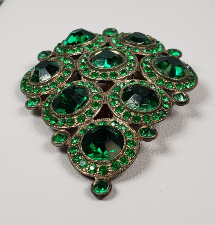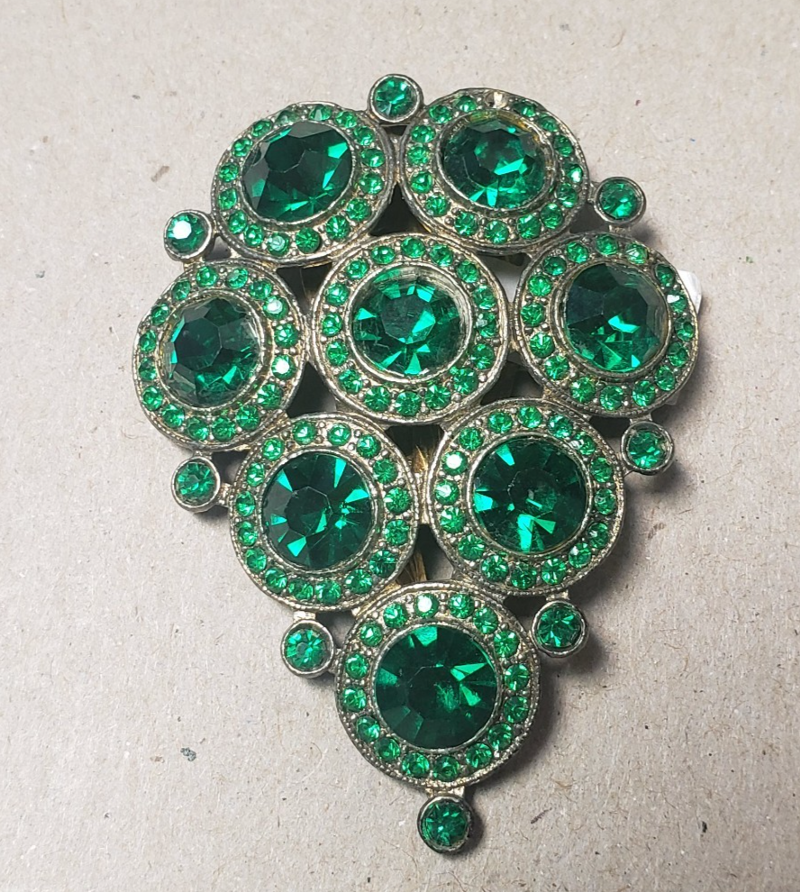 Vintage 1930s Emerald Green Glass Fur Dress Clip Art Deco Czech