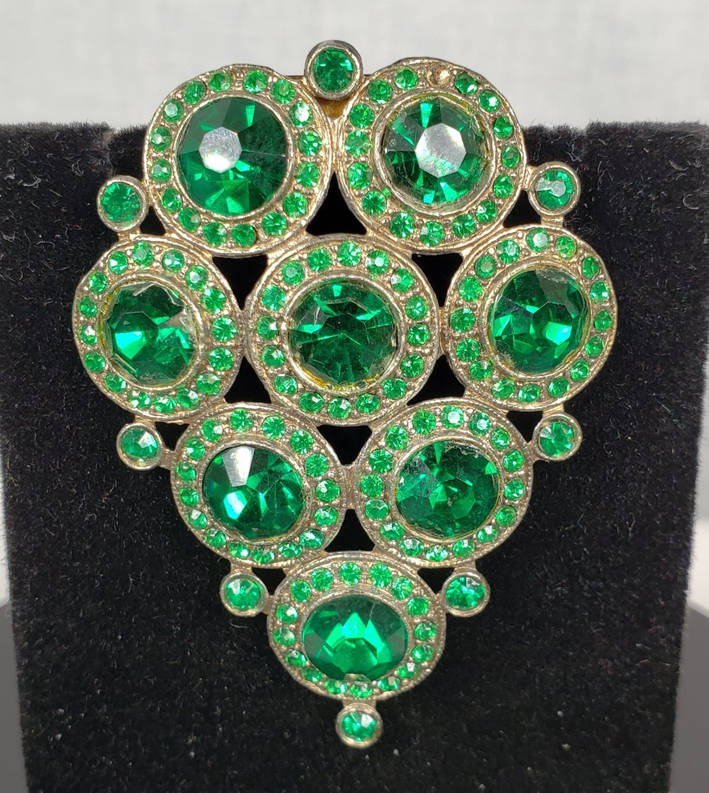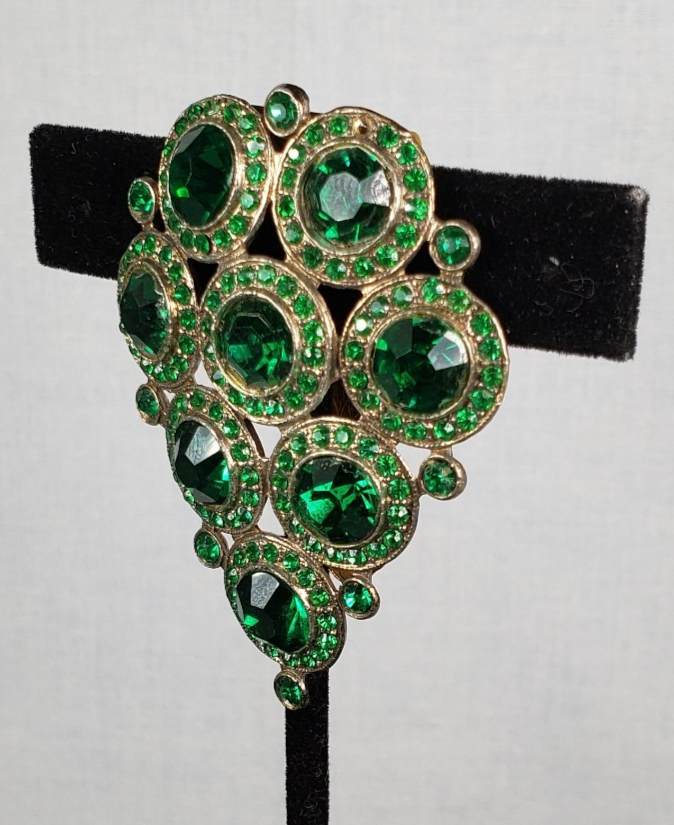 - Vintage 1930s Emerald Green Glass Fur Dress Clip Art Deco Czech