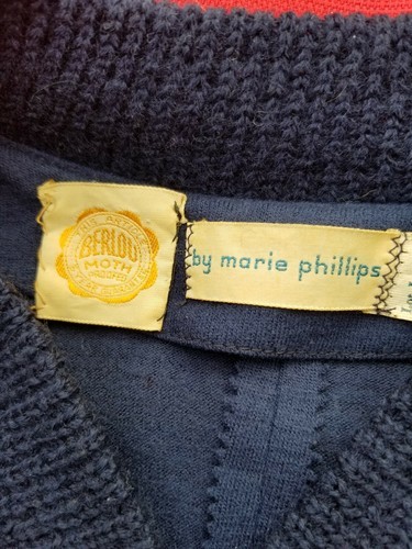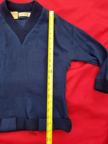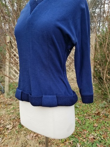 - Vintage 1940-50s Mary Phillips Wool Navy Fitted pin up rockabilly Sweater Fits S