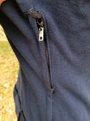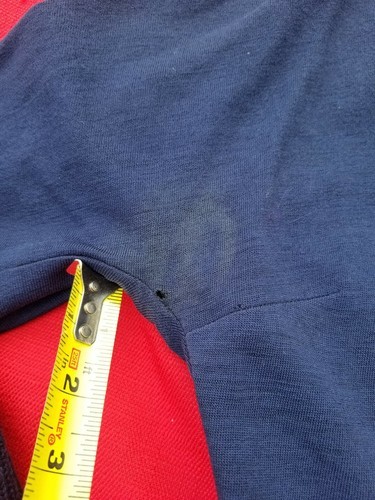 Under armpit has some discoloration, seem needs fixing. Not cleaned or washed by us. Some attic scent.
