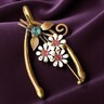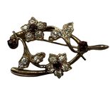 - Vintage 1940s Brooch Wishbone Floral Rhinestone Enamel Mid Century Gold Tone Pin