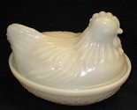 Vintage 1940's Hazel Atlas Hen On Nest Opalescent Milk Glass Trinket or Candy Dish With Lid.
