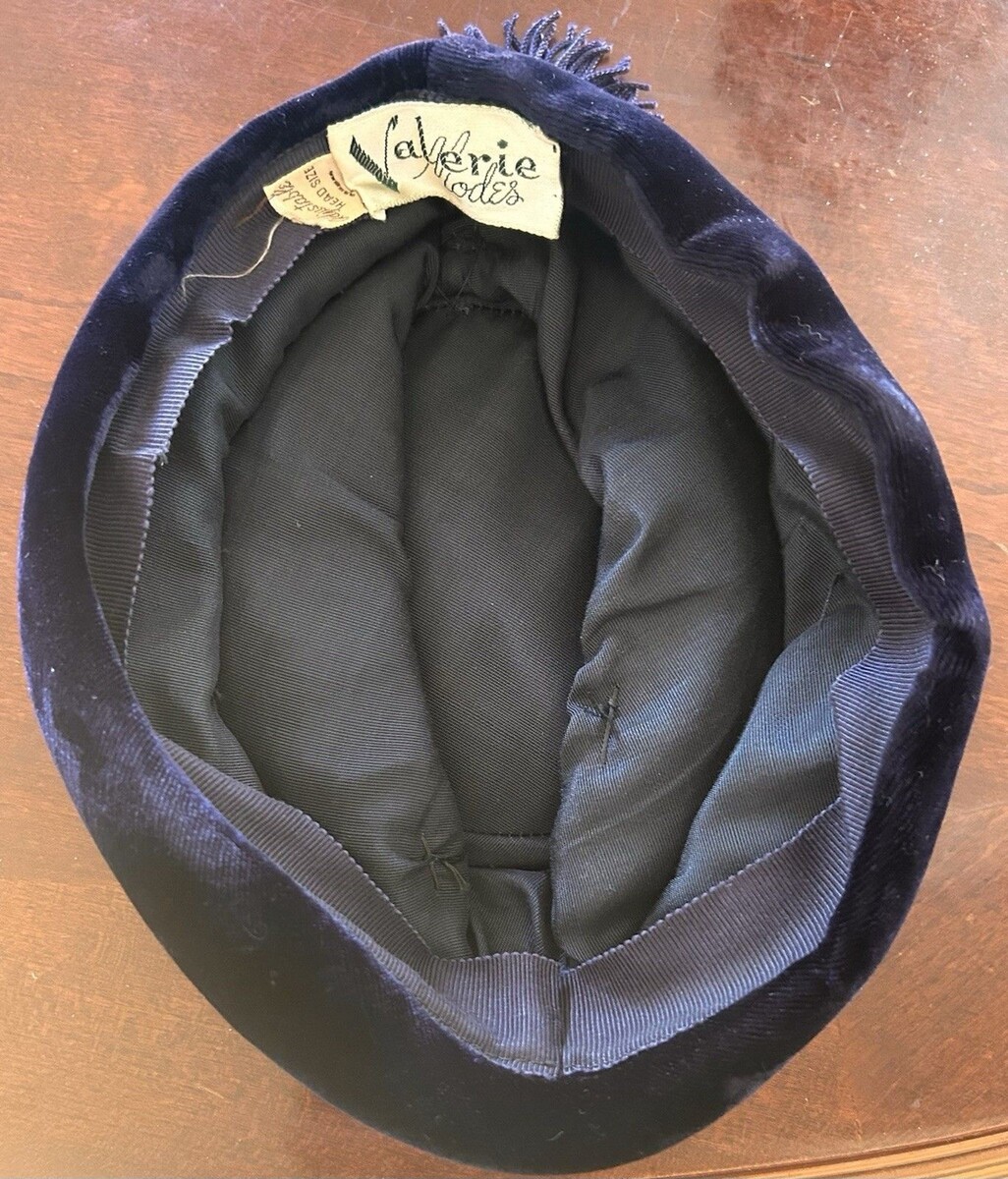 - Vintage 1940s Valerie Modes Velvet Hat w/Tassel Elegant Cocktail Style Made USA