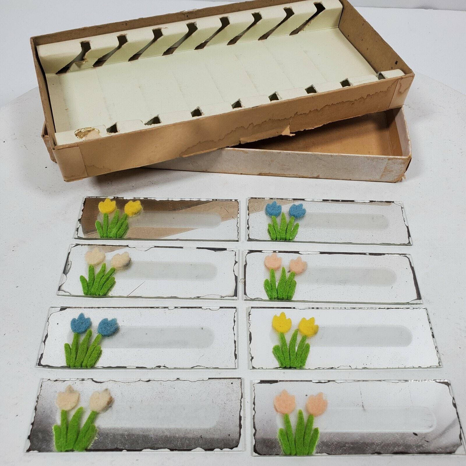 Vintage 1950 Eight Glass Place Cards Floral Party Vintage in Box