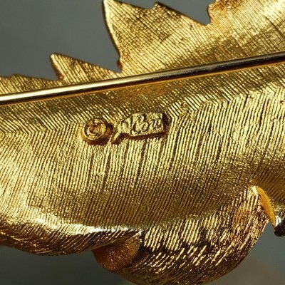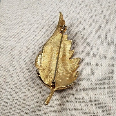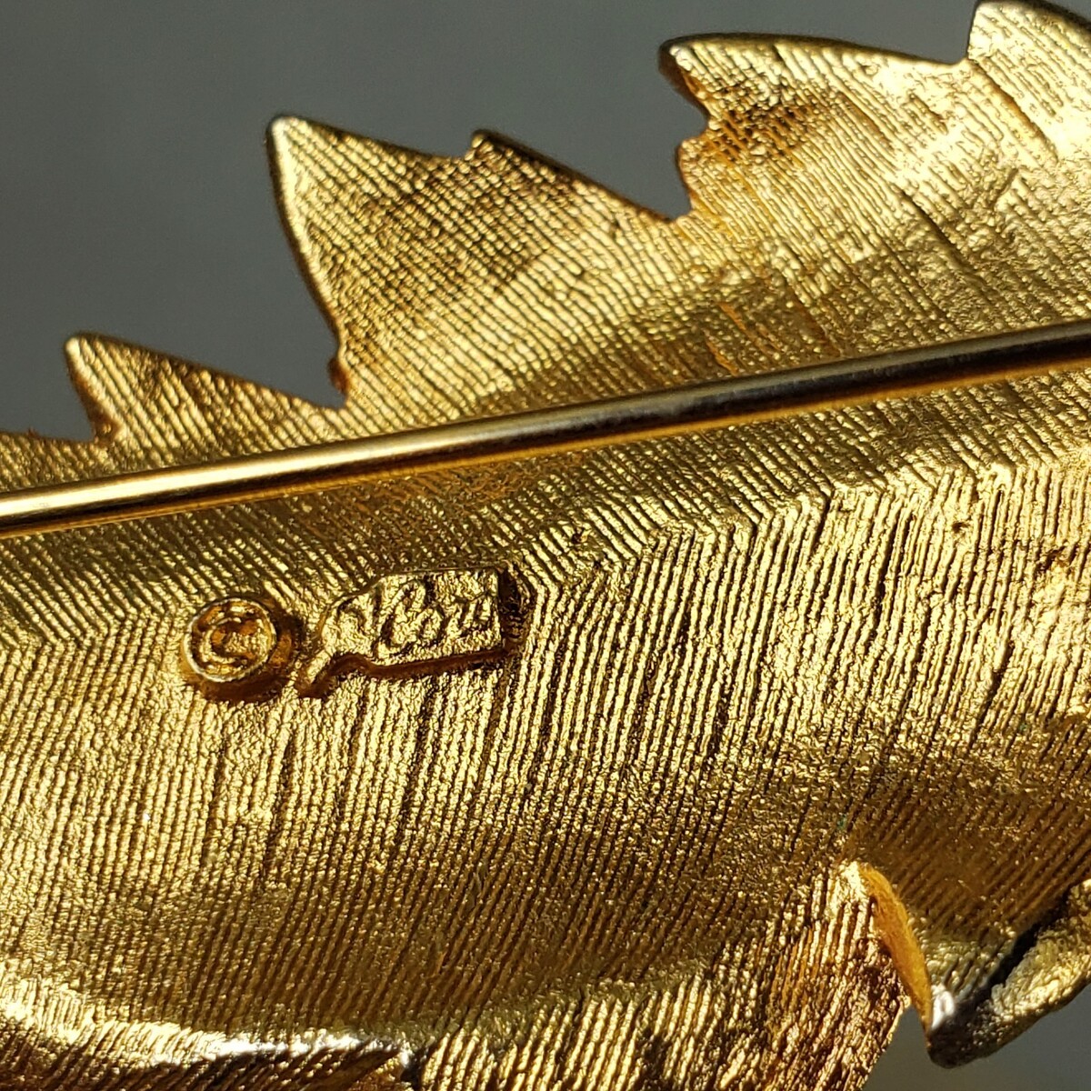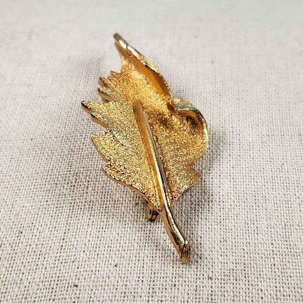 - Vintage 1950's Coro Gold Tone Large Leaf Design Textured Pegasus Leaf Brooch