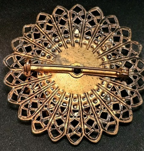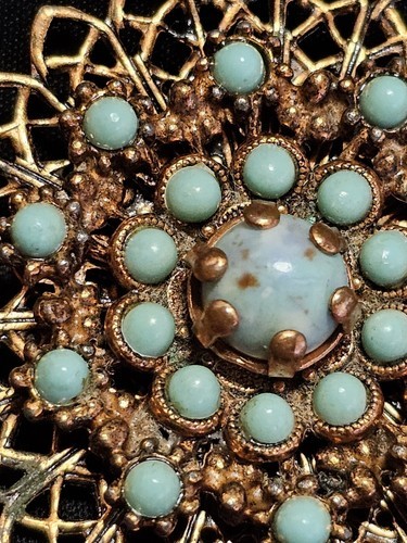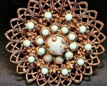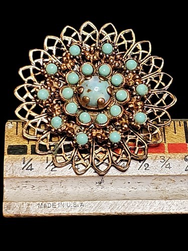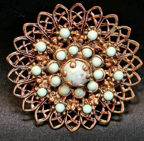 - Vintage 1950s Copper Filagree Faux Turquoise Snowflake Floral Estate Brooch Pin