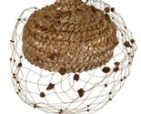 Charming vintage Debbie woven raffia hat in warm honey brown with a playful pom-pom veil. The layered, glossy raffia creates a sculptural pillbox shape that flatters from every angle. Gold lace interior with a soft brown velvet band for comfort and structure.