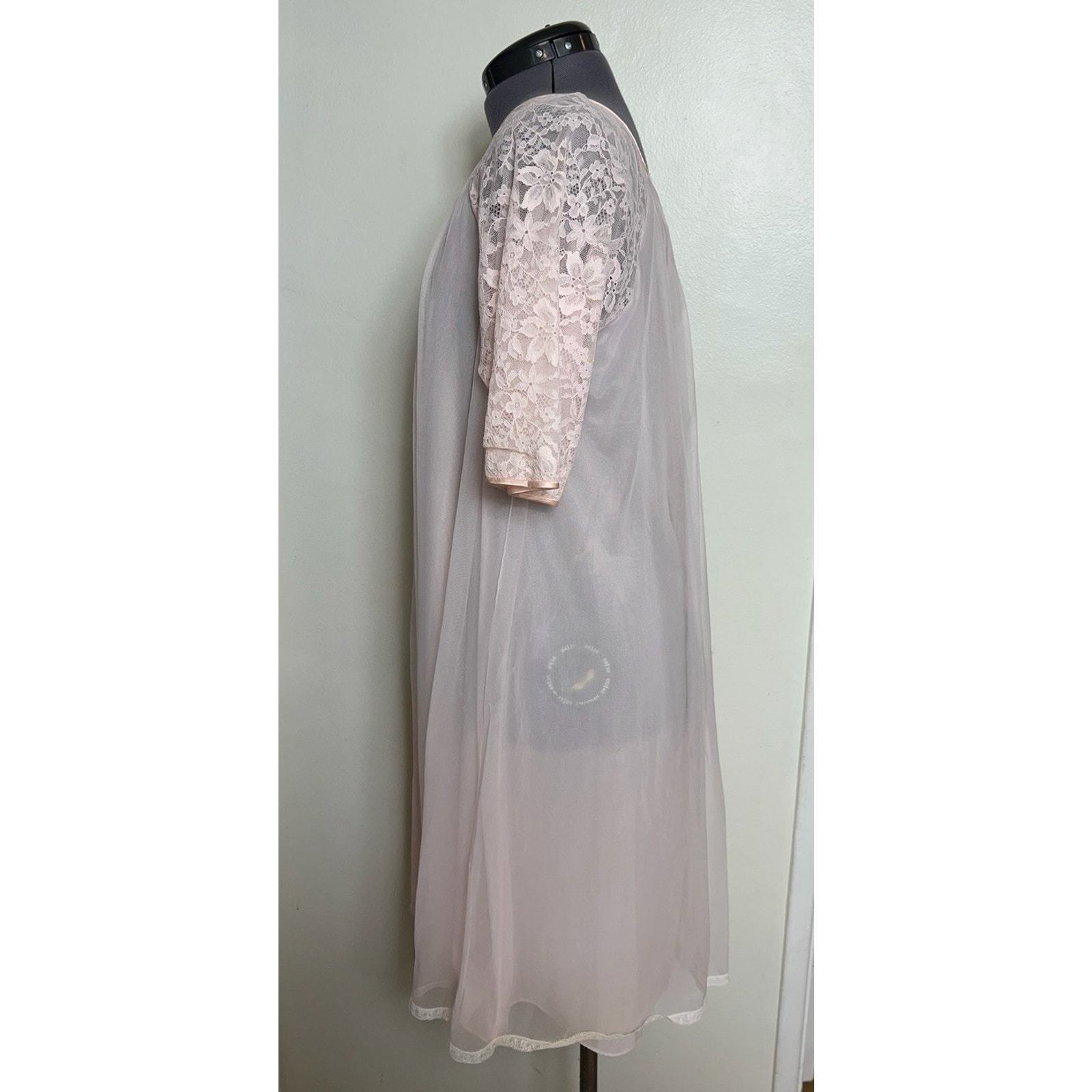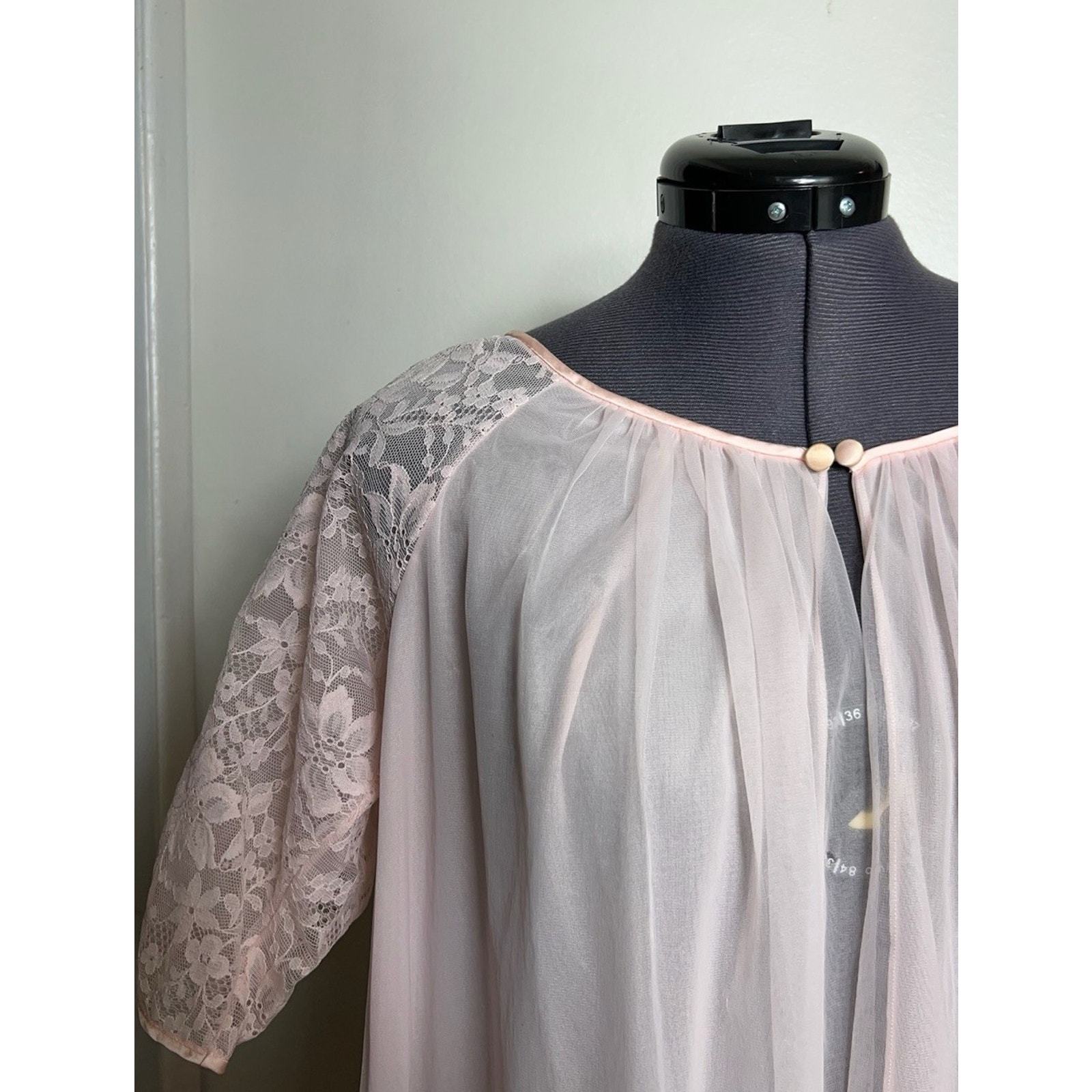 - Vintage 1950s Vanity Fair Pink Chiffon Peignoir Robe Lace Sheer Babydoll XS