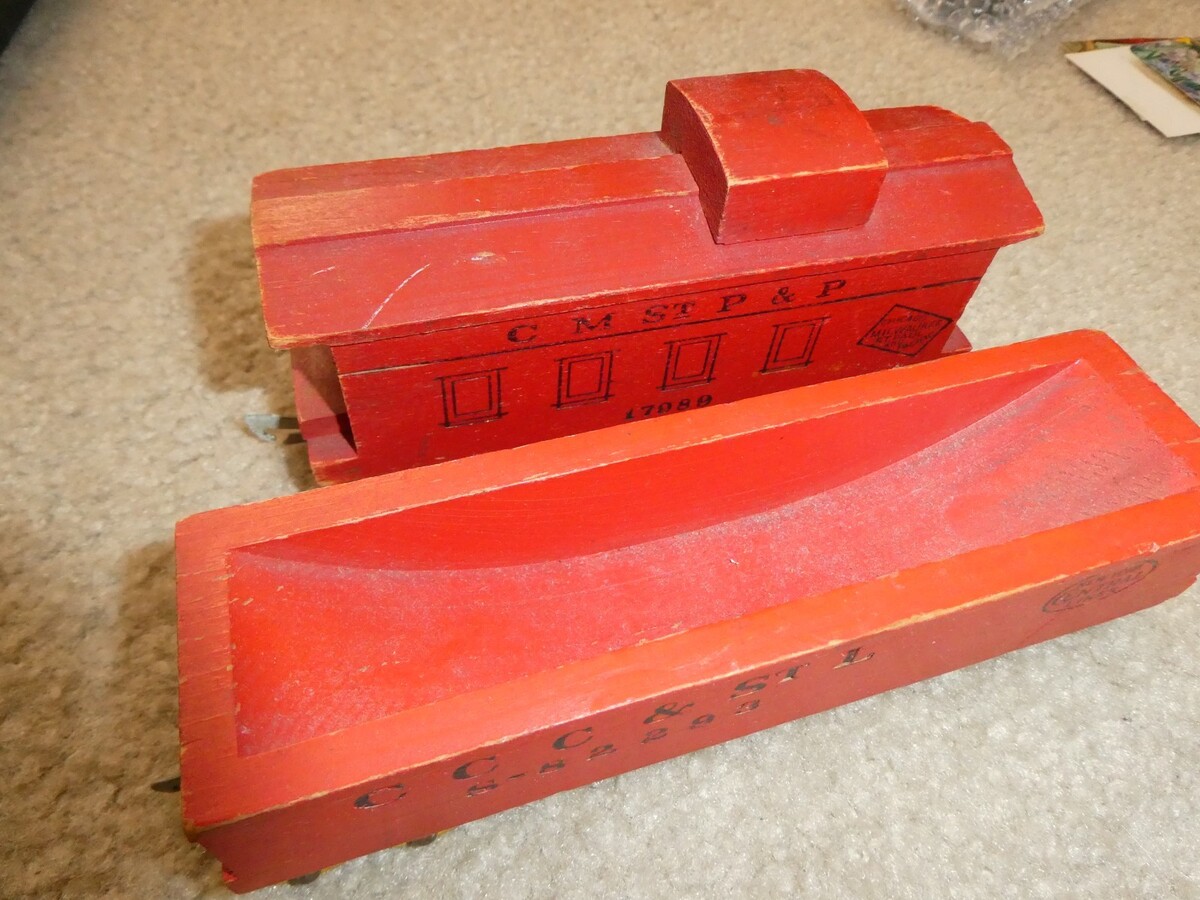 - Vintage 1950s Wooden CCC & StL Hopper and CM StlP Caboose Train Cars