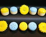 - Vintage 1950s Yellow Blue Floral Plastic 1in Salt/Pepper Shakers Sunflower Rose