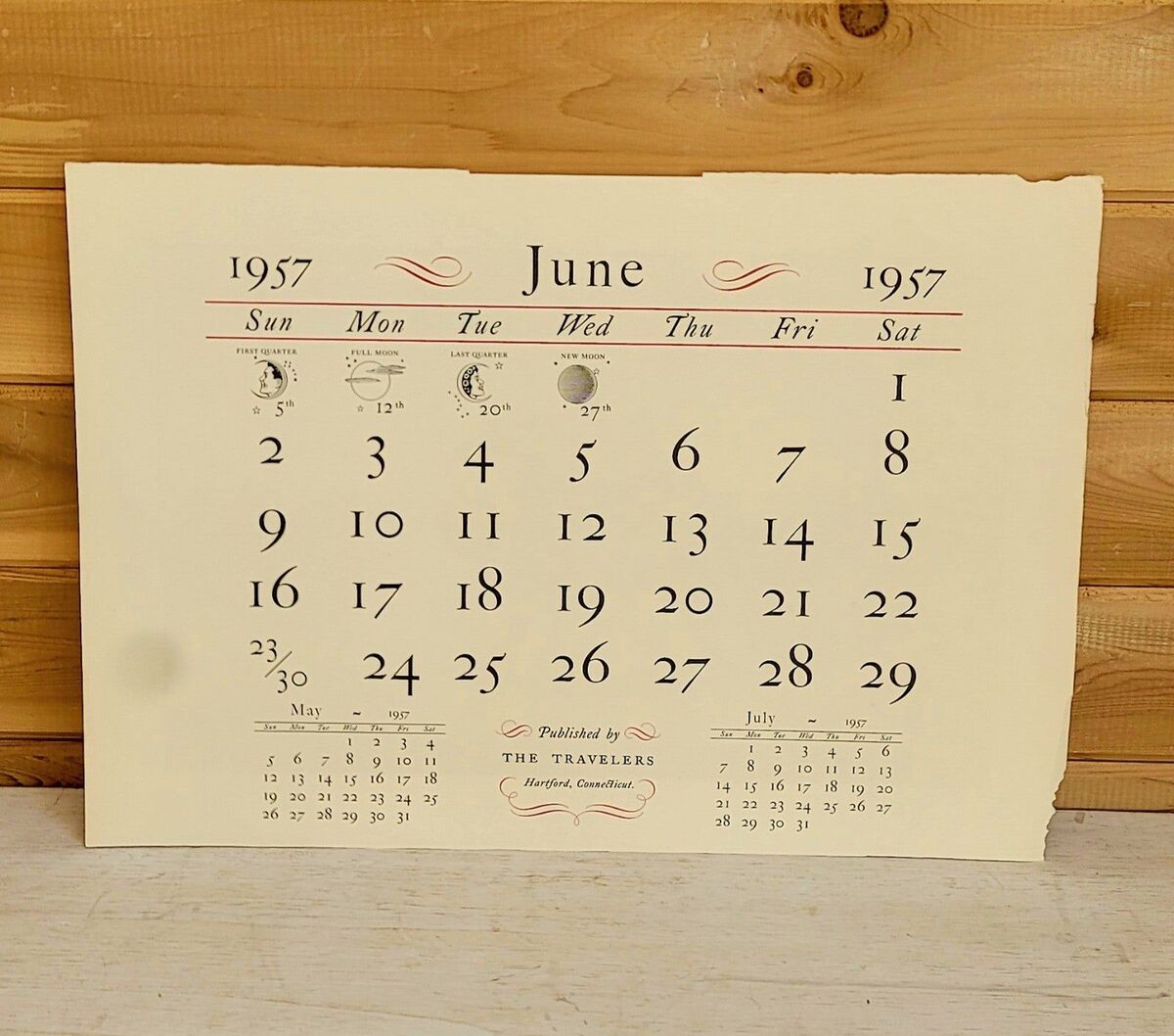 - Vintage 1957 Currier & Ives Lithograph A Check Calendar June
