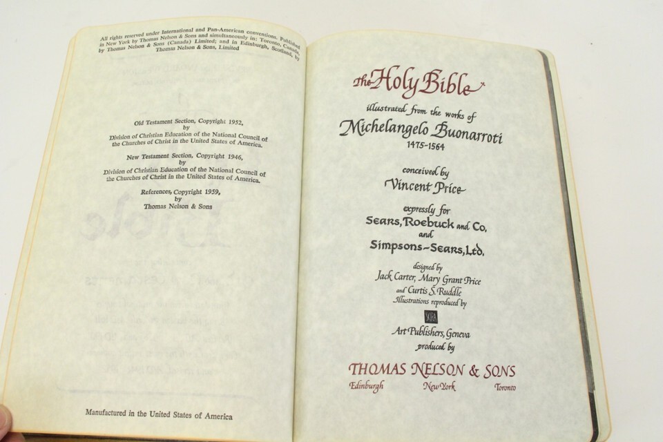 - Vintage 1959 Holy Bible Vincent Price Sears Michelangelo Art Thomas Nelson