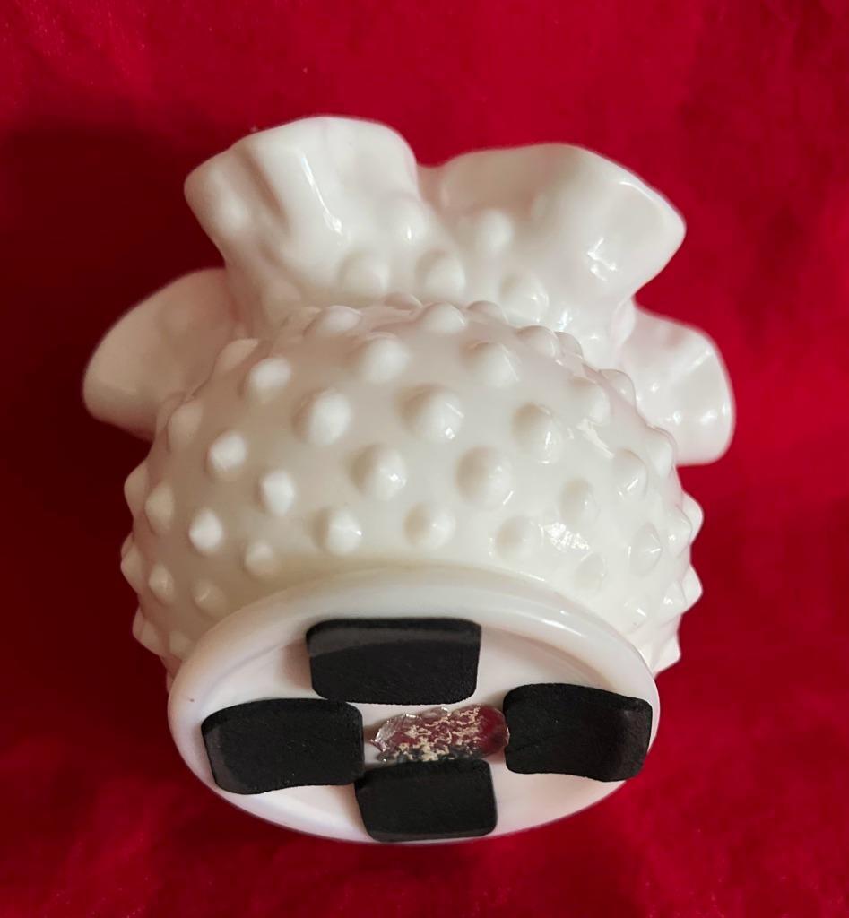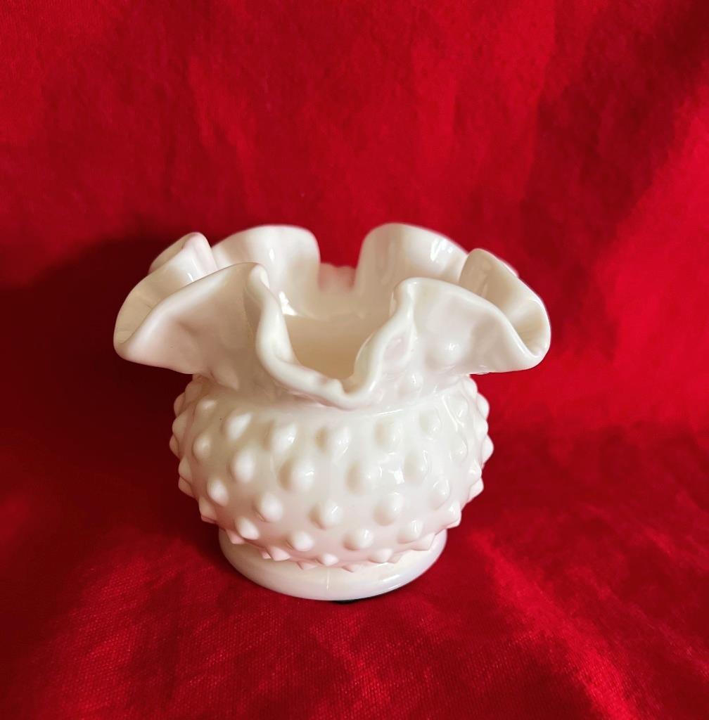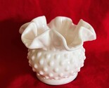 - Vintage 1960’s Fenton Rose Bowl Hobnail Milk Glass Ruffled Top 3’’ Vase