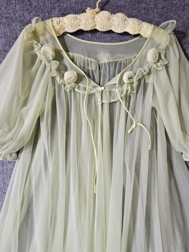- Vintage 1960s Lisette by Al Sterling Green Chiffon Full Sweep Peignoir Small