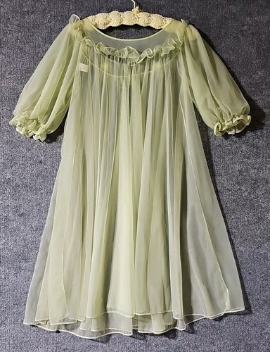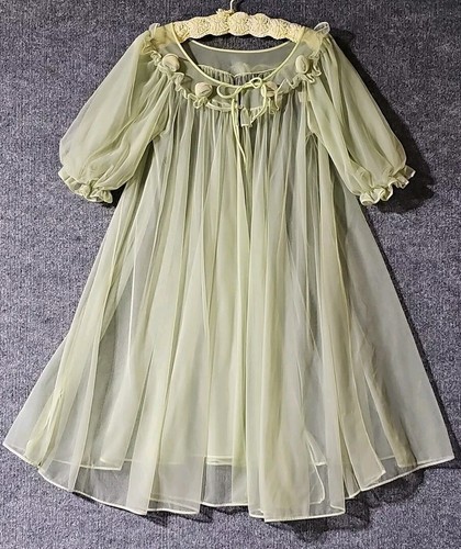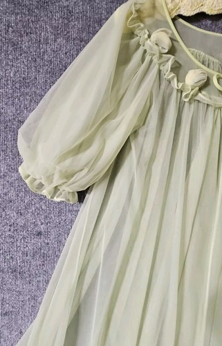 Vintage 50s 60s Lisette Al Sterling Chiffon Layered Nightgown Robe Peignoir Set Puff Short Sleeve Retro USA