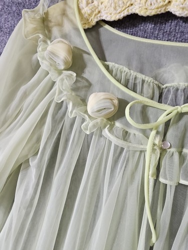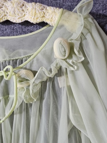 UP FOR SALE: Vintage Lisette Designed by Al Sterling Peignoir Silky Flowing Rosettes Small Lime Green