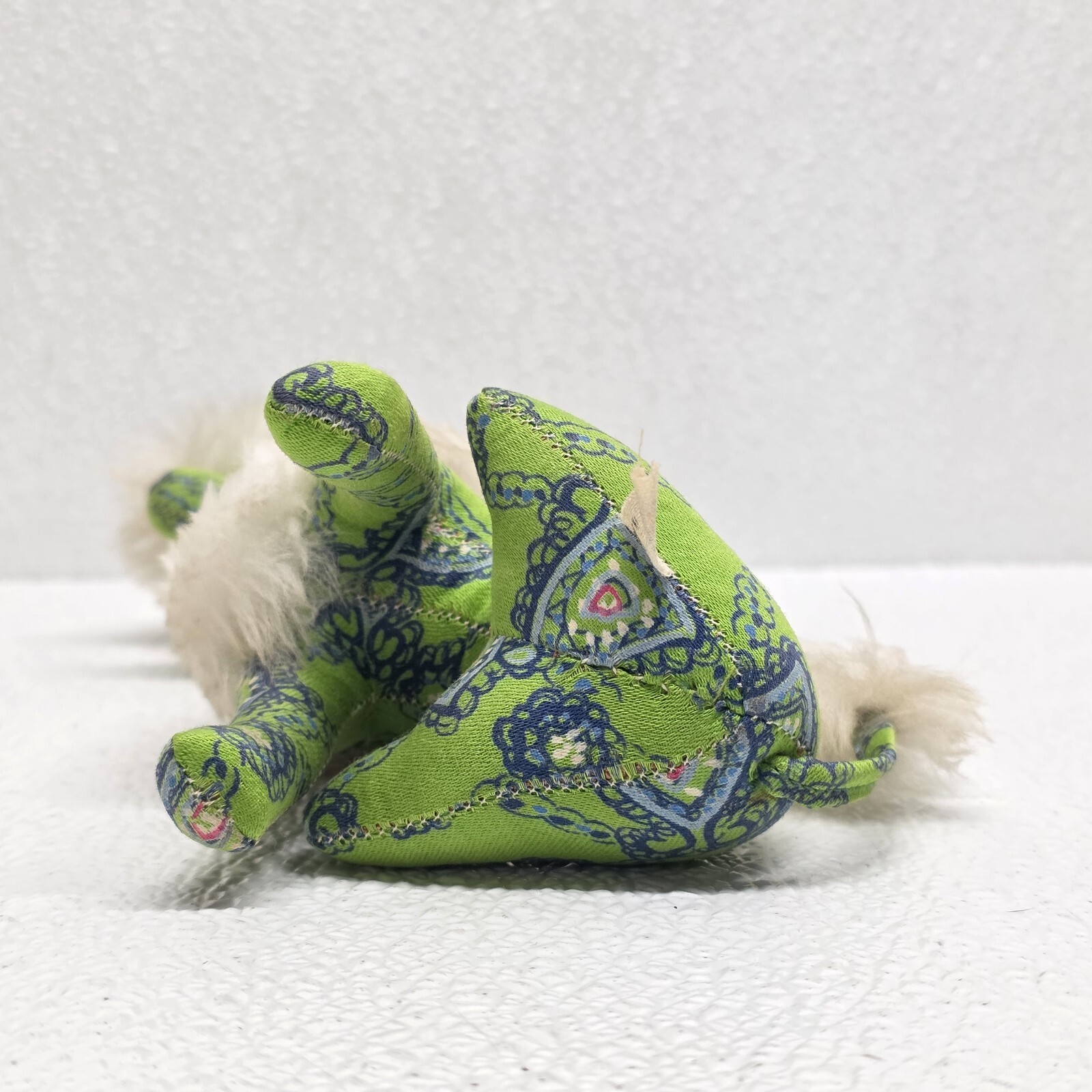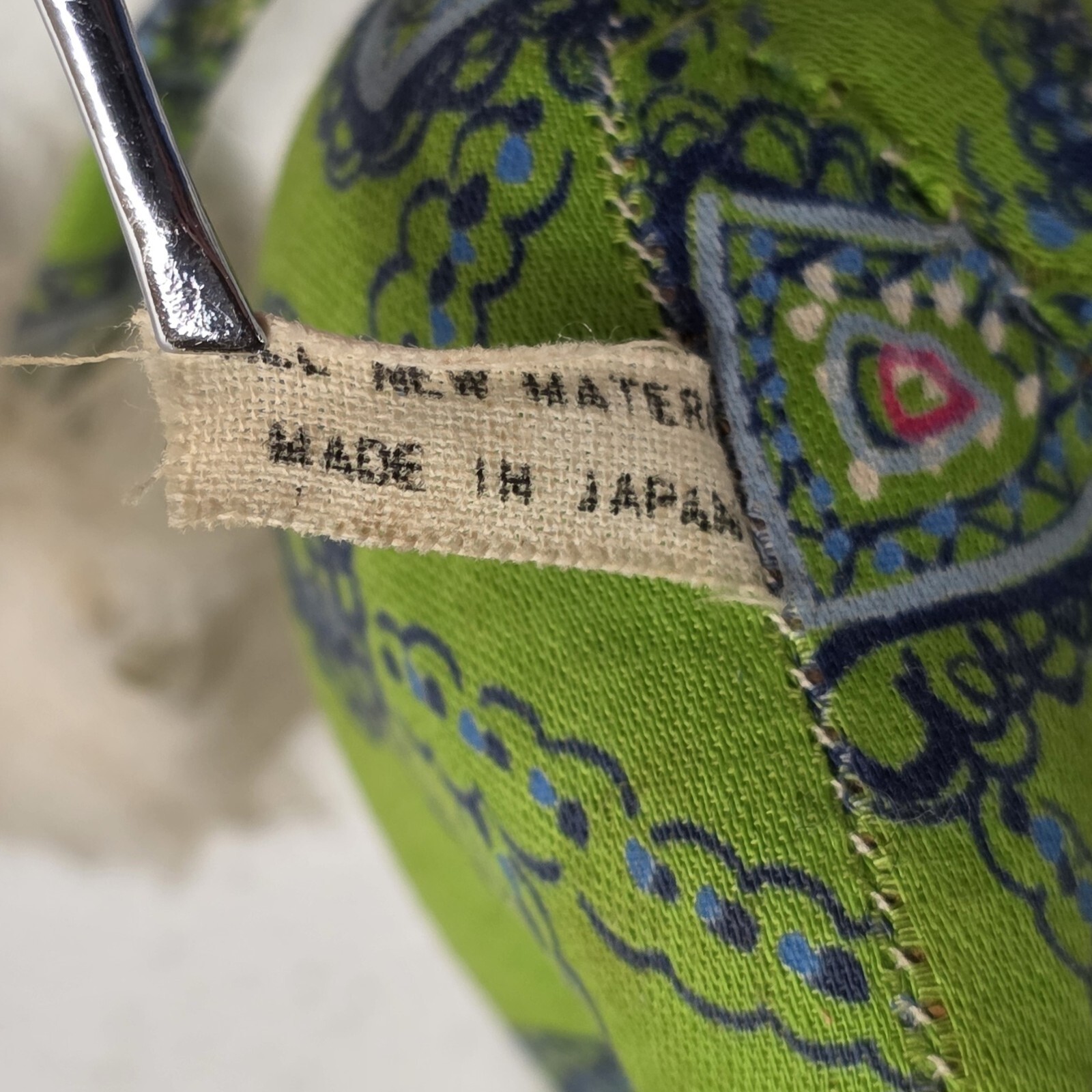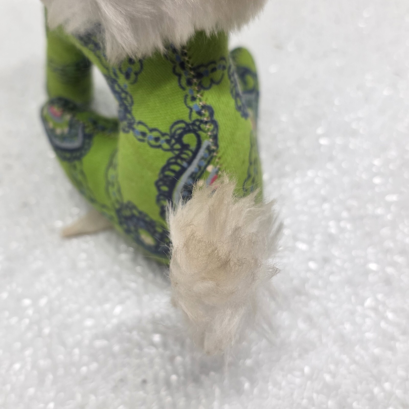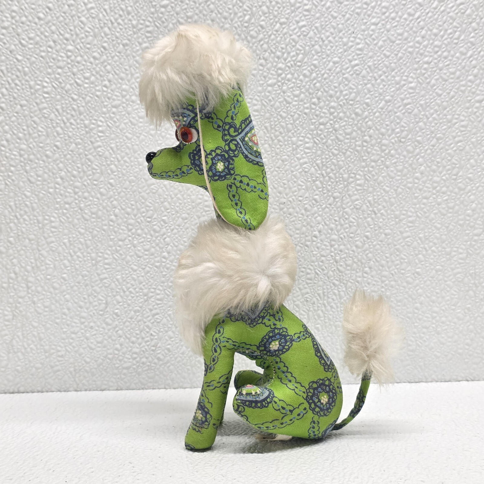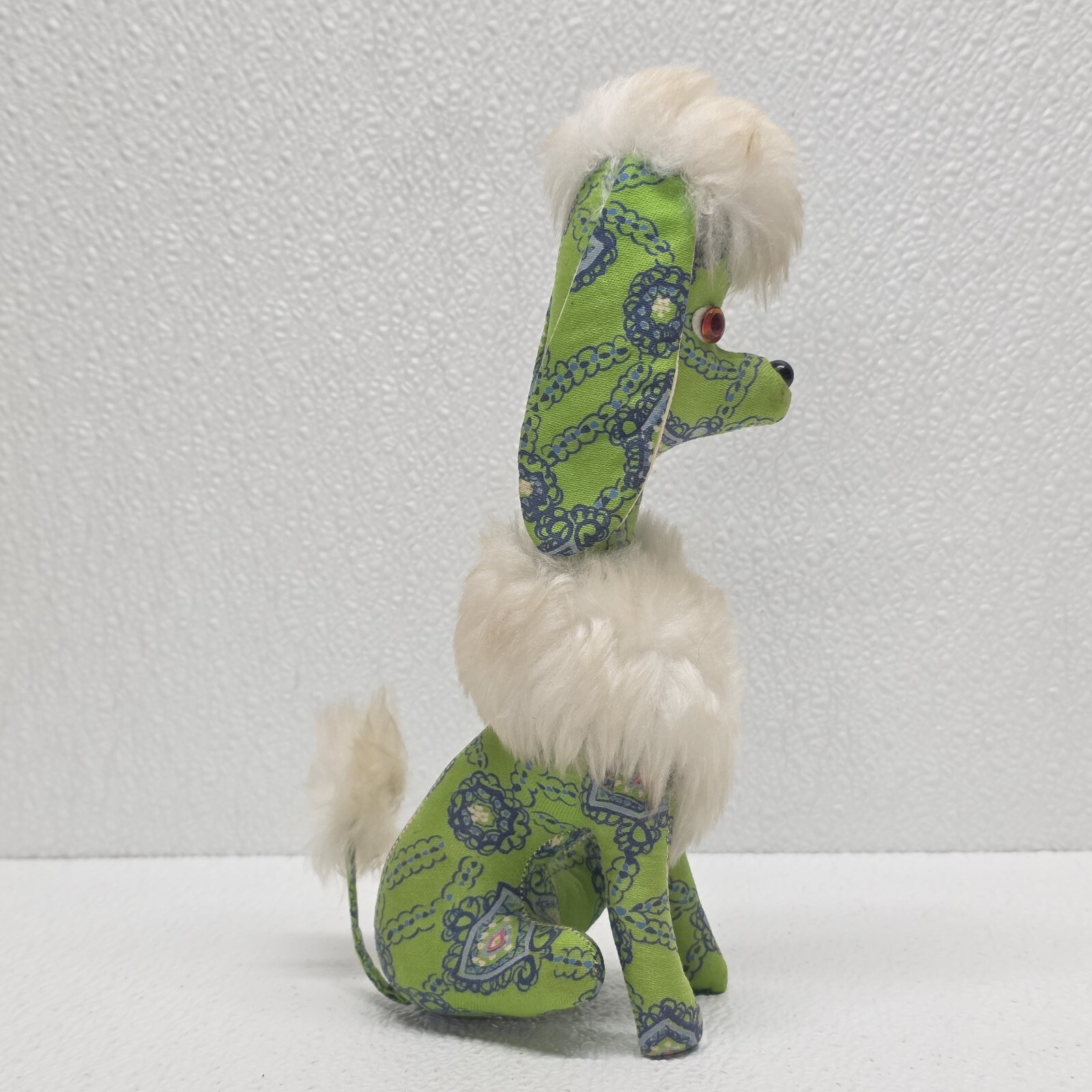 - Vintage 1960s Made in Japan Green White Patterned Fabric Plush Sitting Poodle