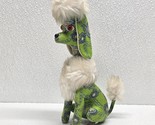 Vintage 1960s Made in Japan Green White Patterned Fabric Plush Sitting Poodle