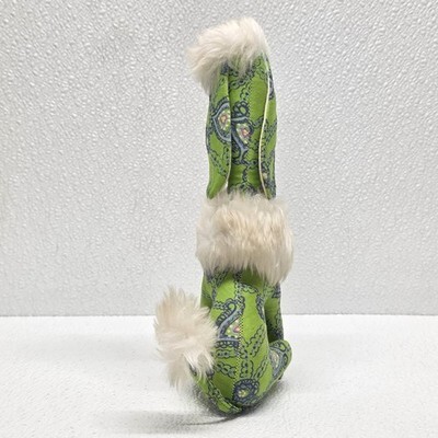 Vintage 1960s Made in Japan Green White Patterned Fabric Plush Sitting Poodle. Some small spots from age, see images for condition. Images show actual item that will ship.
