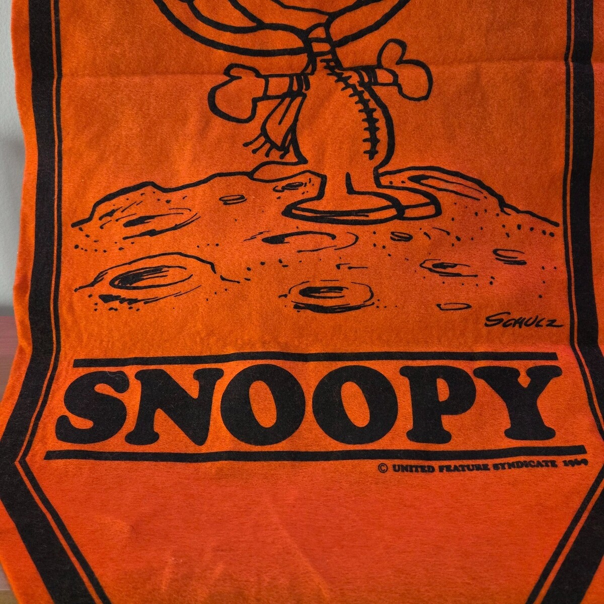 VINTAGE 1969 THE MOON IS MADE OF AMERICAN CHEESE SPACE SNOOPY ORANGE BANNER NEW