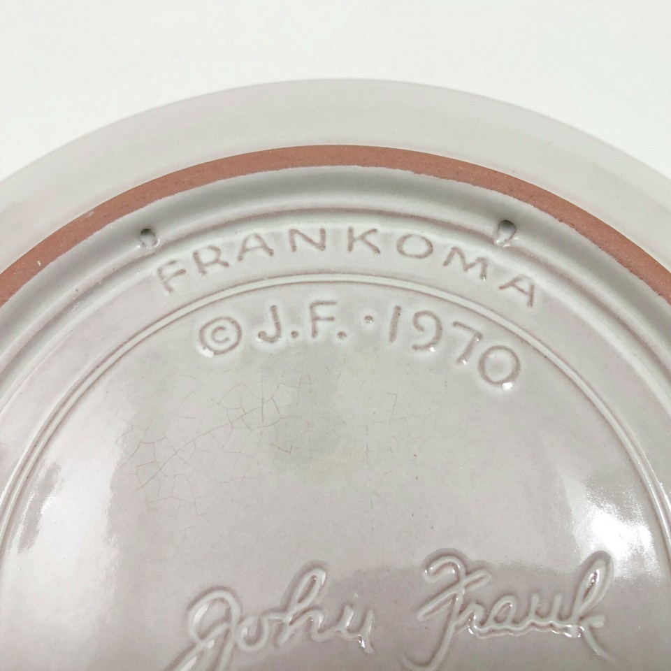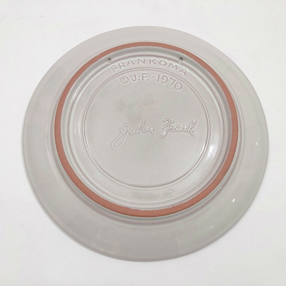 This piece is free fro cracks and chips. A small amount of crazing on the back. It features the Baby Jesus in raised relief and is signed on the back by John Frank dated 1970.