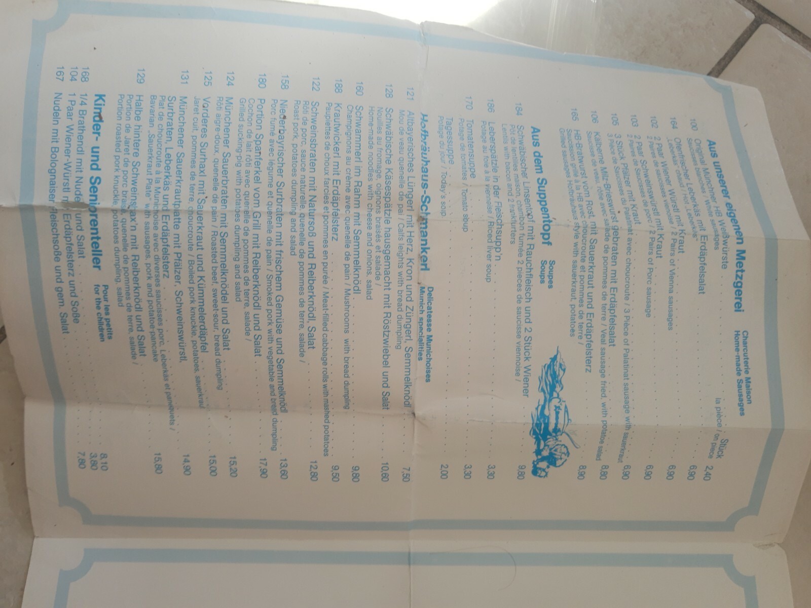 - Vintage 1970's/80's Hofbrauhaus Munich Menu Schwemme Biere Beer