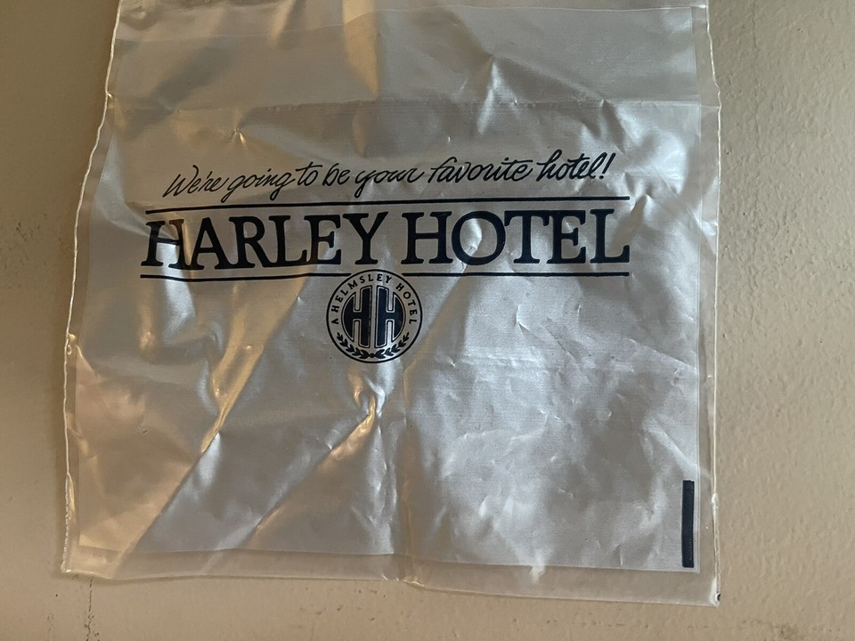 - Vintage 1970s Harley Helmsley Hotel Make Up Toiletries Drawstring Plastic Bag