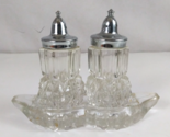 - Vintage 1970s Indiana Glass Diamond Point Crystal Salt & Pepper Shakers & Tray