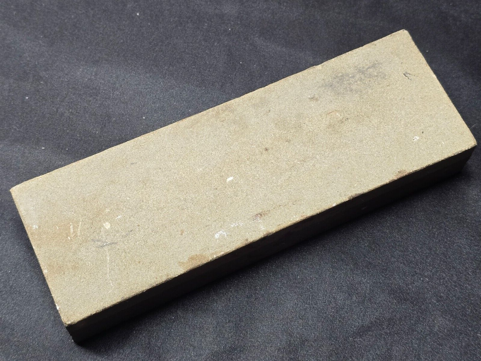 Nice old whetstone in very good condition. Minor chipping on one corner (see photos). Appears to be unused or used very little. looks like a small amount of oil staining, but neither surface is worn or cupped. Grits are unknown...however, I have been sharpening knives for years and one side feels to me like a 220-300 grit, and the other side is much smoother, maybe a 600-800 grit.