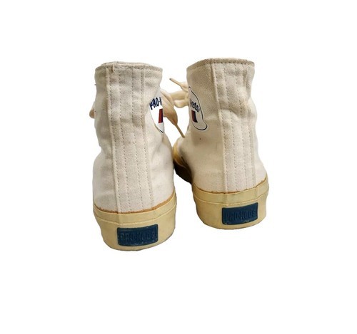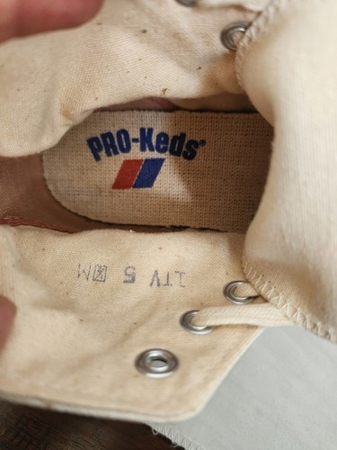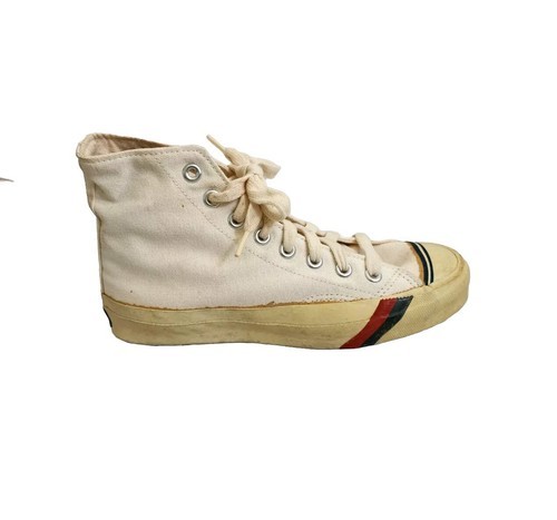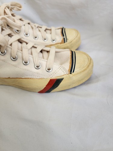 - Vintage 1970s Pro Keds Beige White High Tops Sneakers Canvas Men Size 5.5