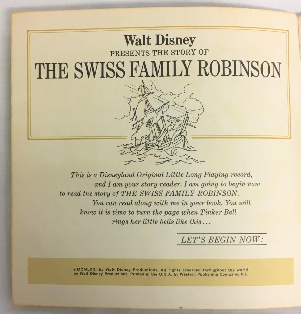 - Vintage 1971 Walt Disney Presents The Swiss Family Robinson 33 1/3 Record & Book