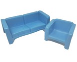 VINTAGE 1973 MATTEL BARBIE DREAM HOUSE FURNITURE BLUE COUCH & CHAIR PLASTIC