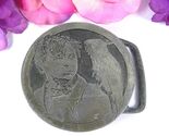 Marked ?Buck-L-Up 1975? and ?Hand Crafted Pewter,? this round buckle showcases fine detail in both the figure?s expression and the bird?s featherwork. It measures approximately 2 3/4" inches across and includes a sturdy loop for belt attachment.