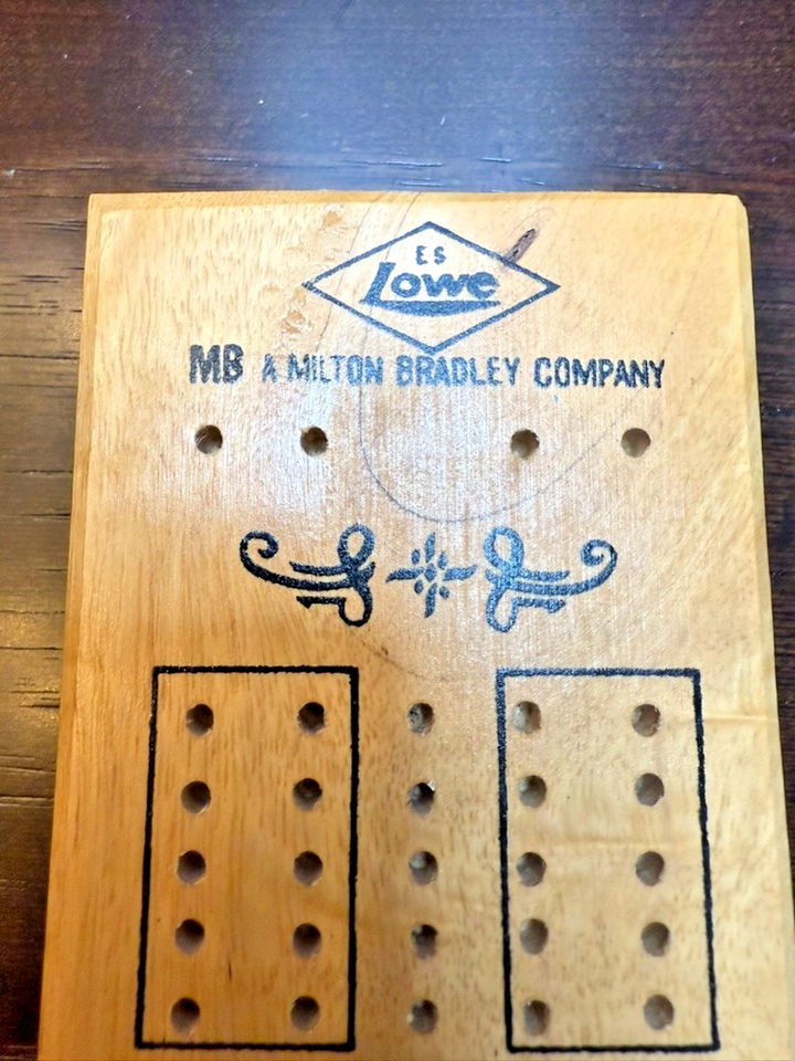 - Vintage 1975 Wooden Cribbage Board 1503, E.S. Lowe, Milton Bradley, **BOARD ONLY
