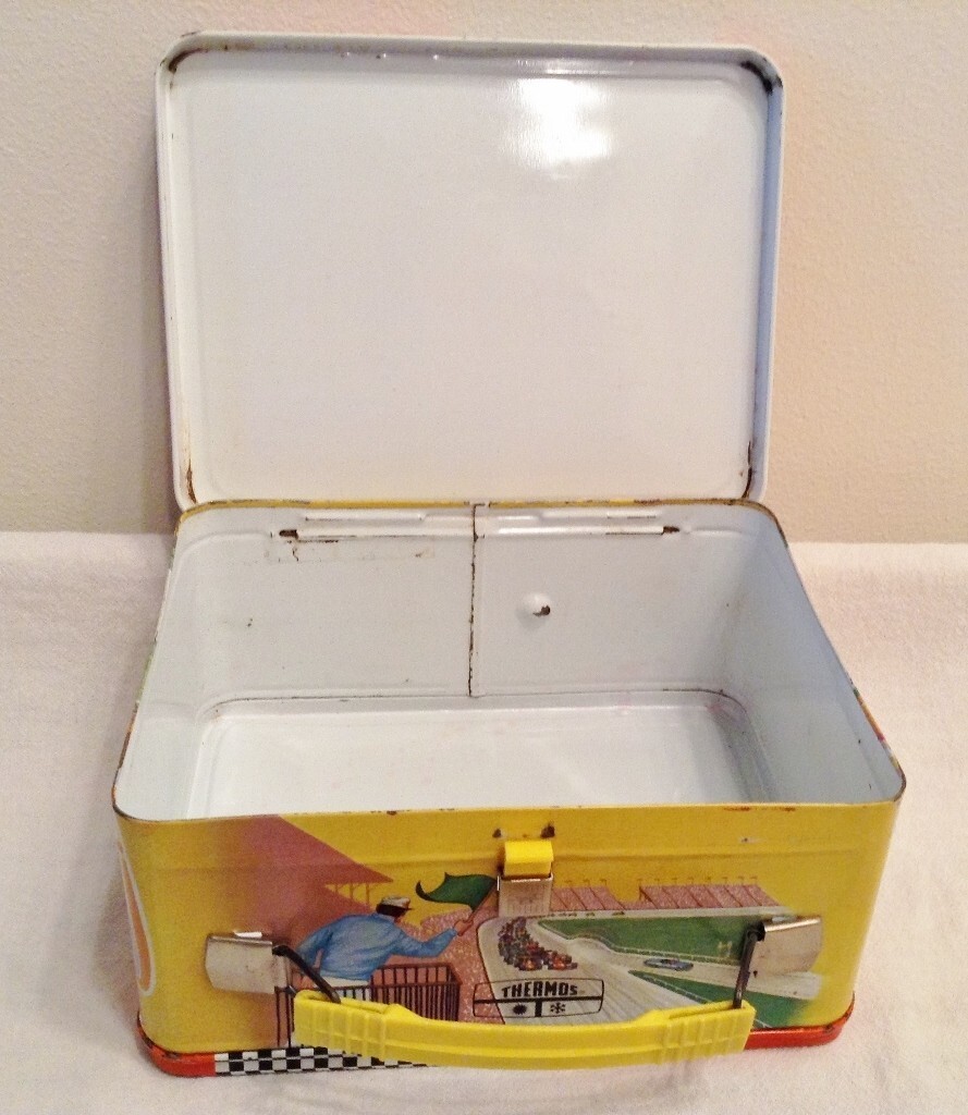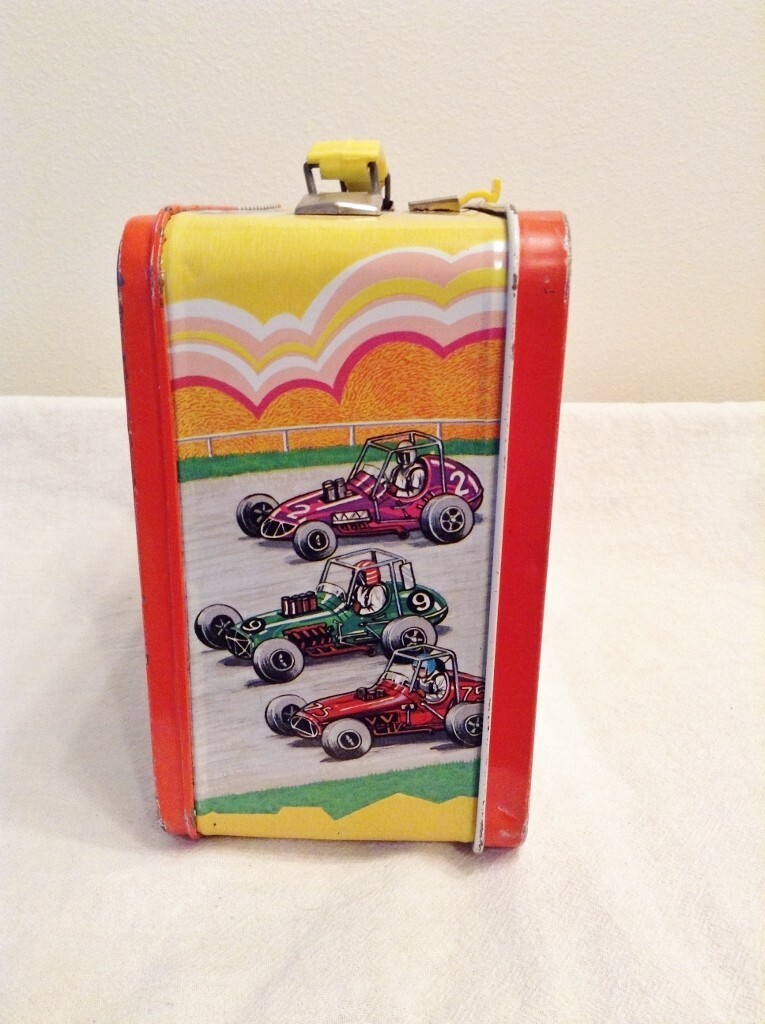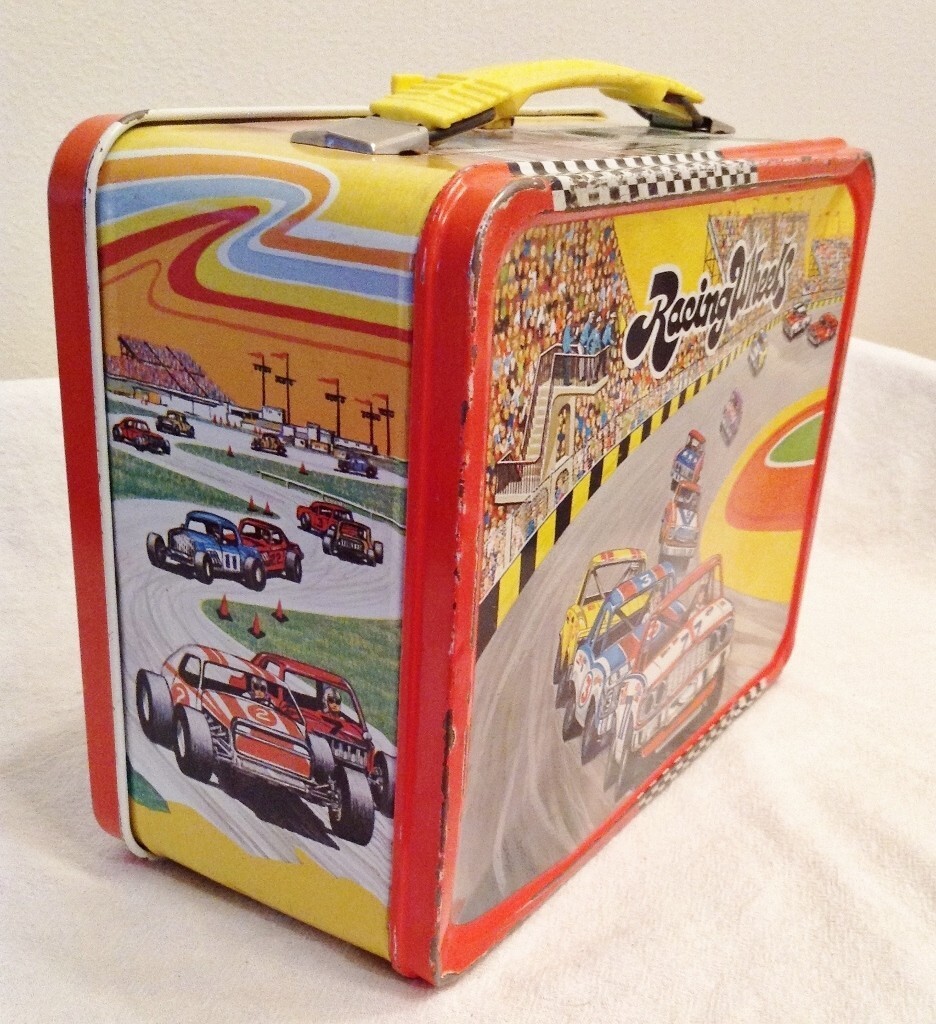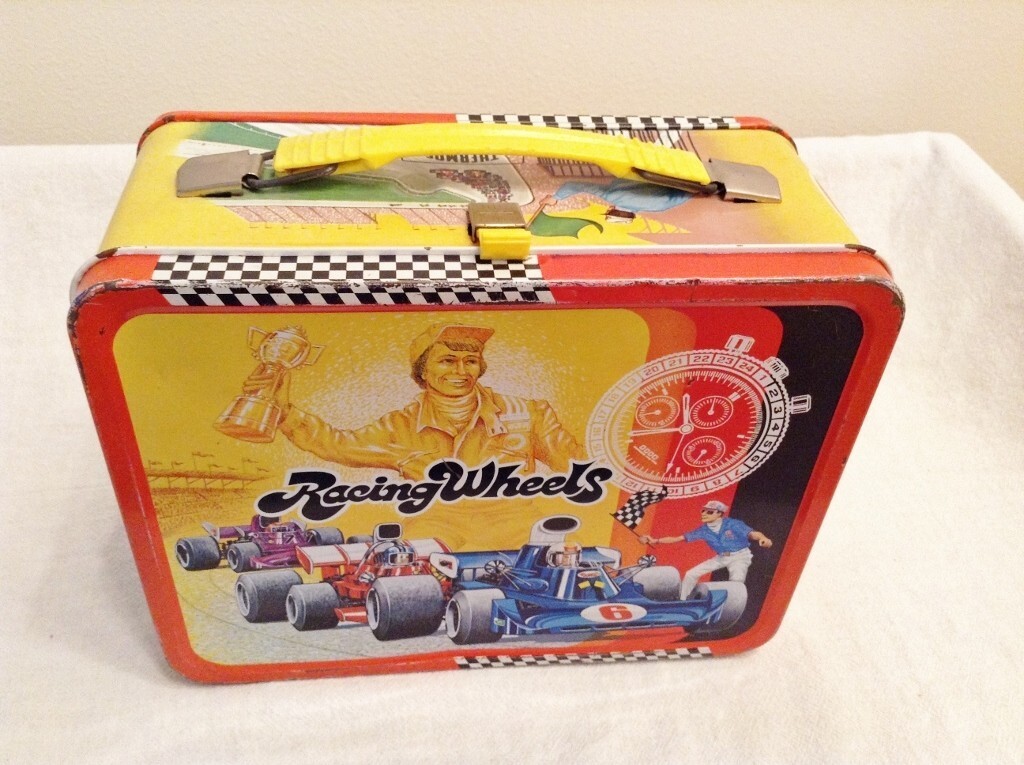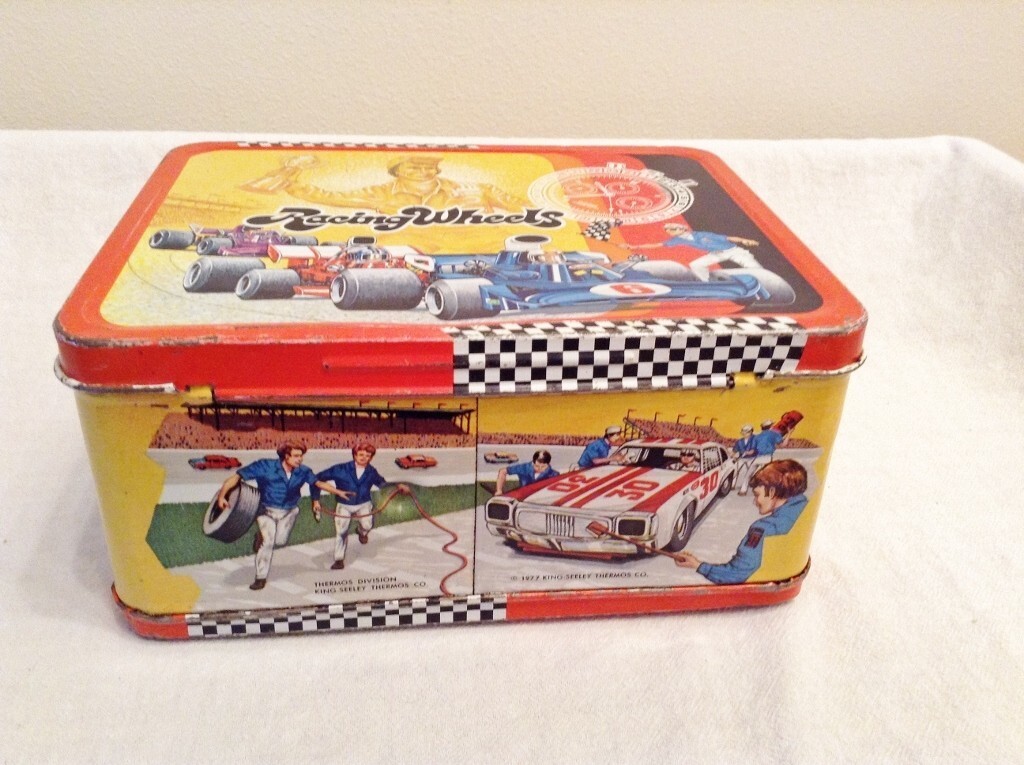 - Vintage 1977 Racing Wheels Metal Lunchbox & Thermos ~ Race Car Dragster