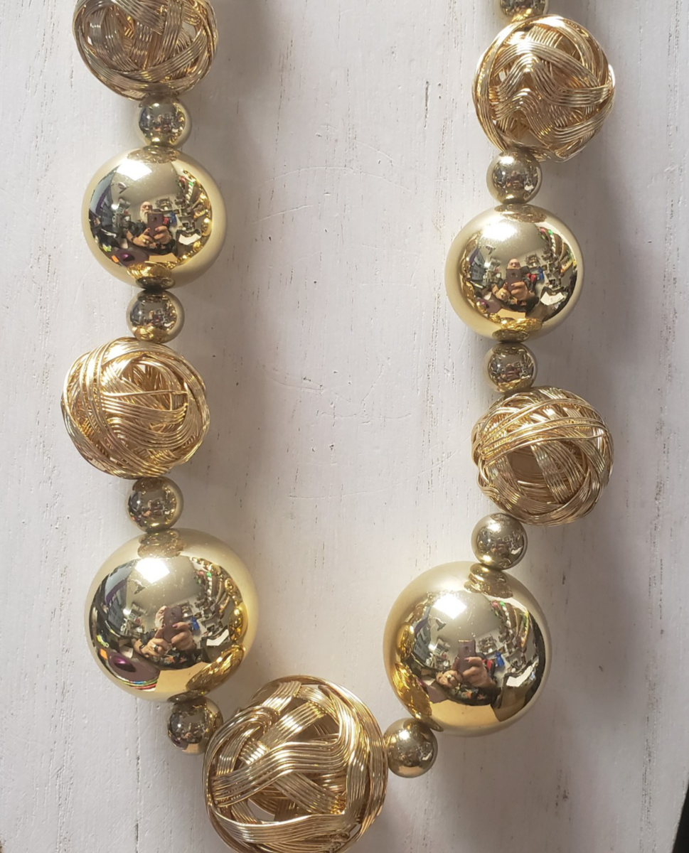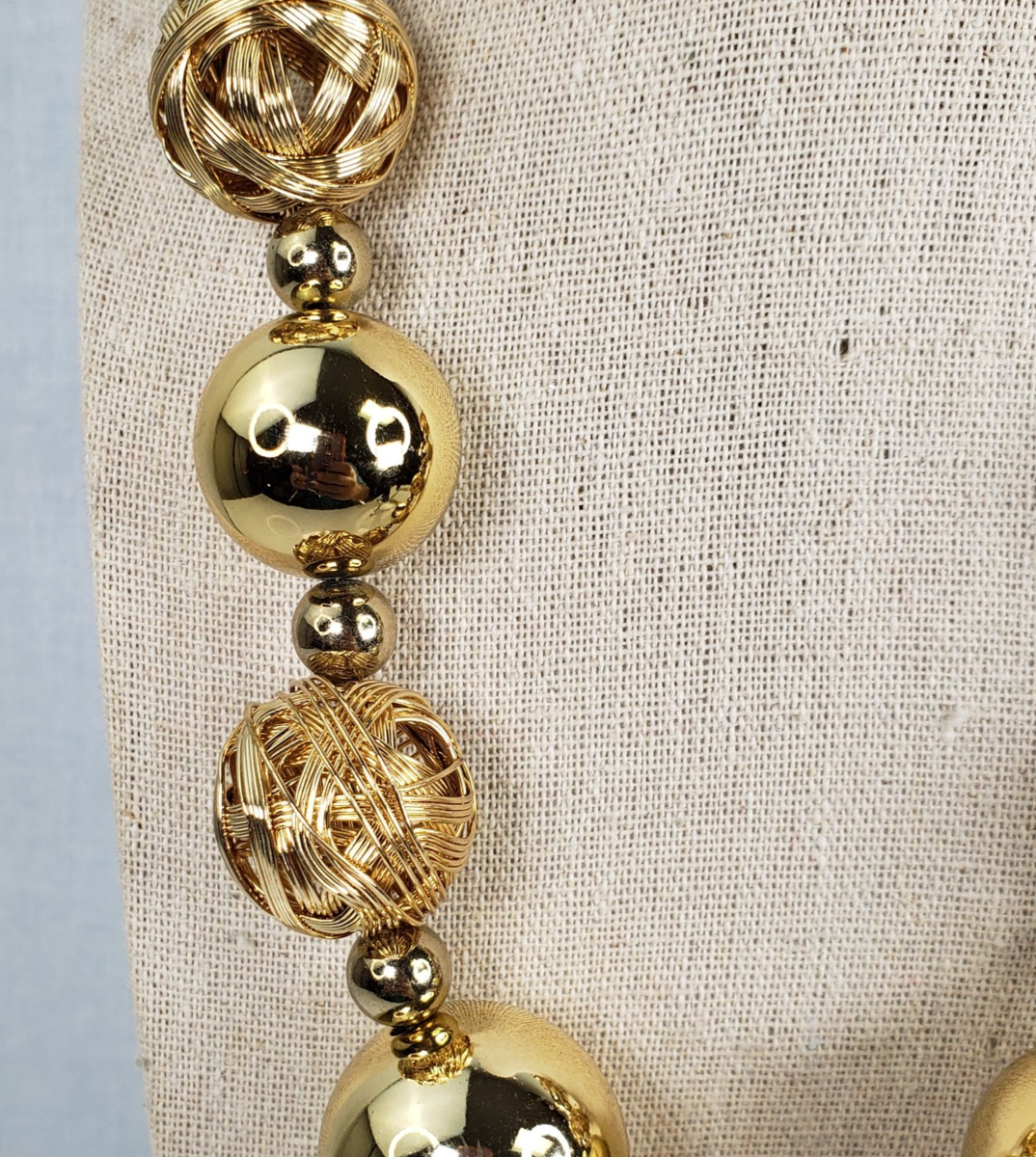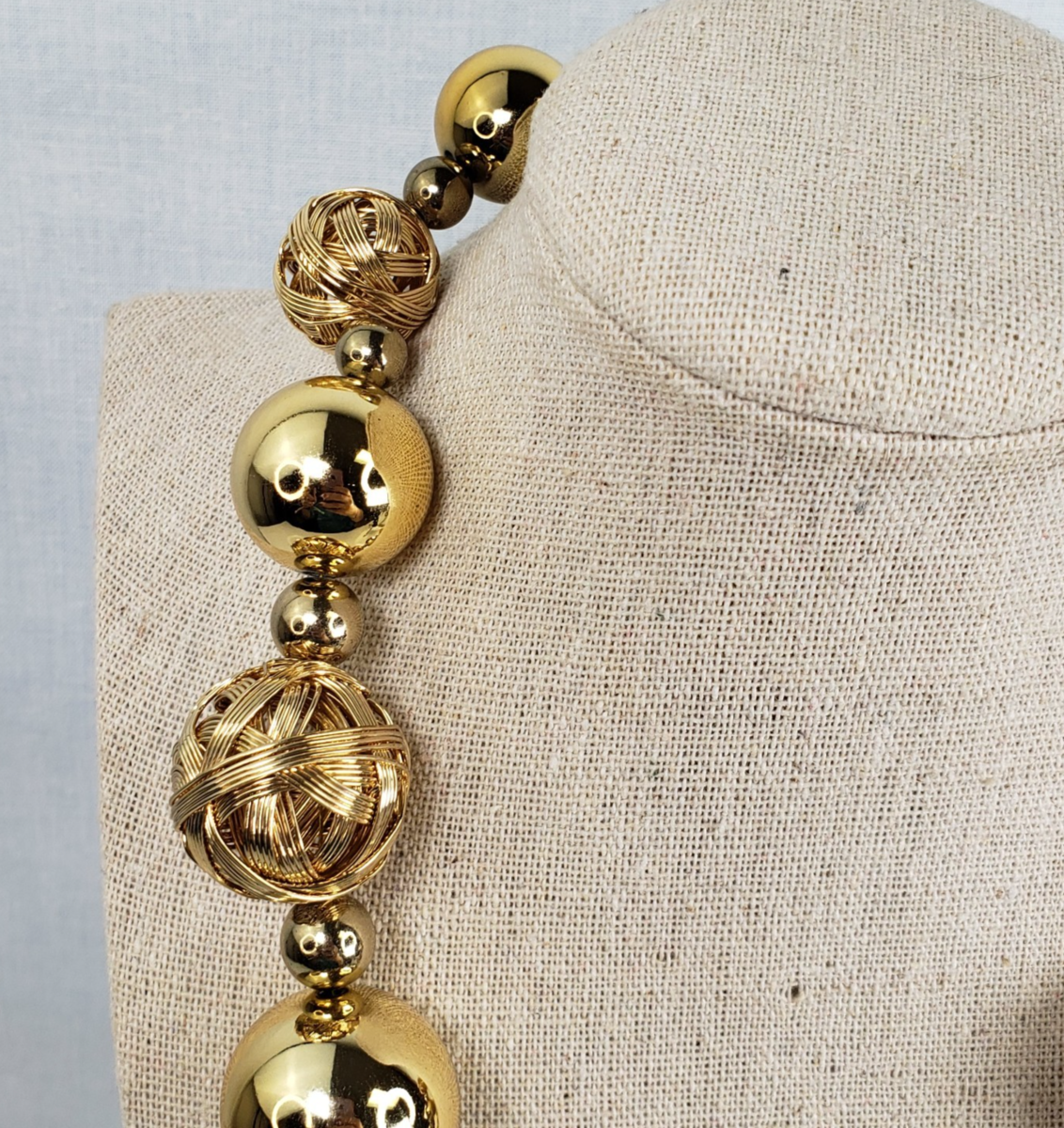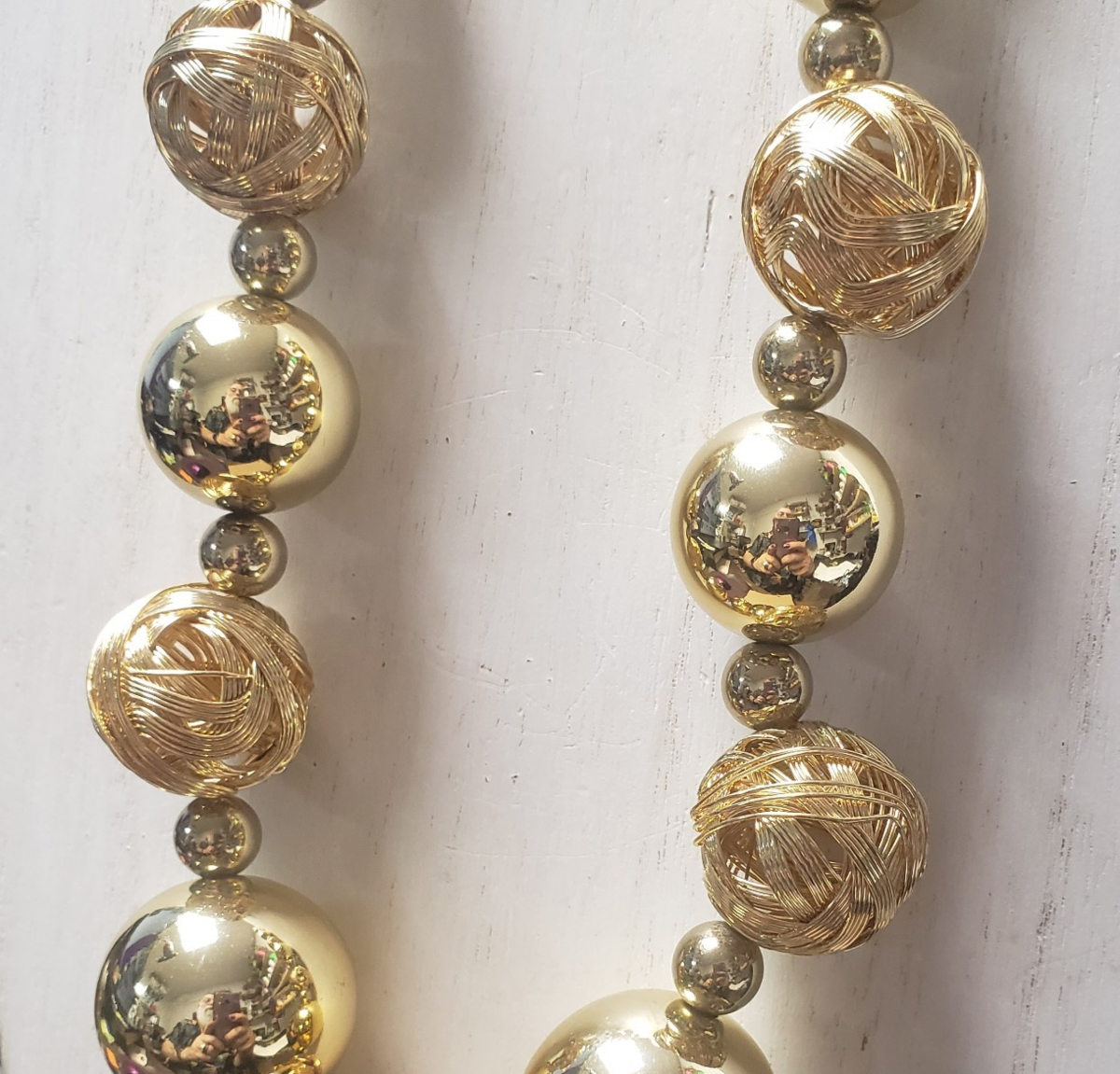 - Vintage 1980's Brand c1946 Wired Ball Gold Tone Choker Necklace