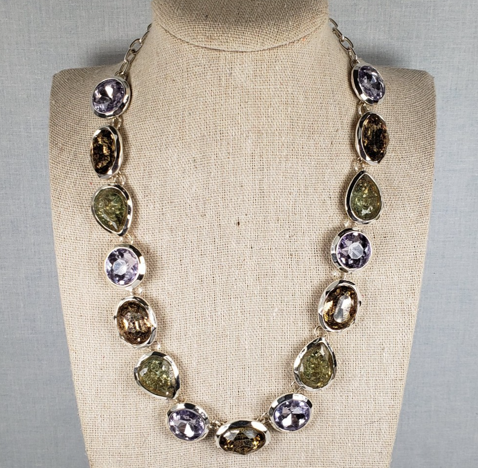 Vintage 1980's Dana Buchman Crystal Rhinestone Silver Tone Choker Necklace