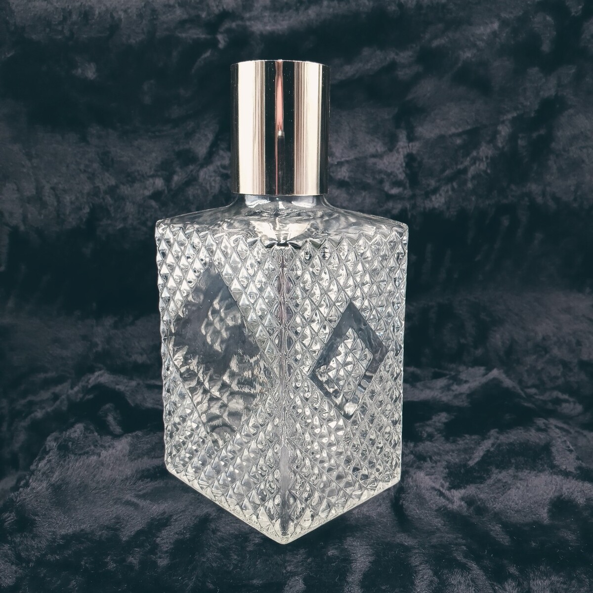 Vintage 1980s Old Charter Kentucky Bourbon Whiskey Clear Glass Diamond Bottle