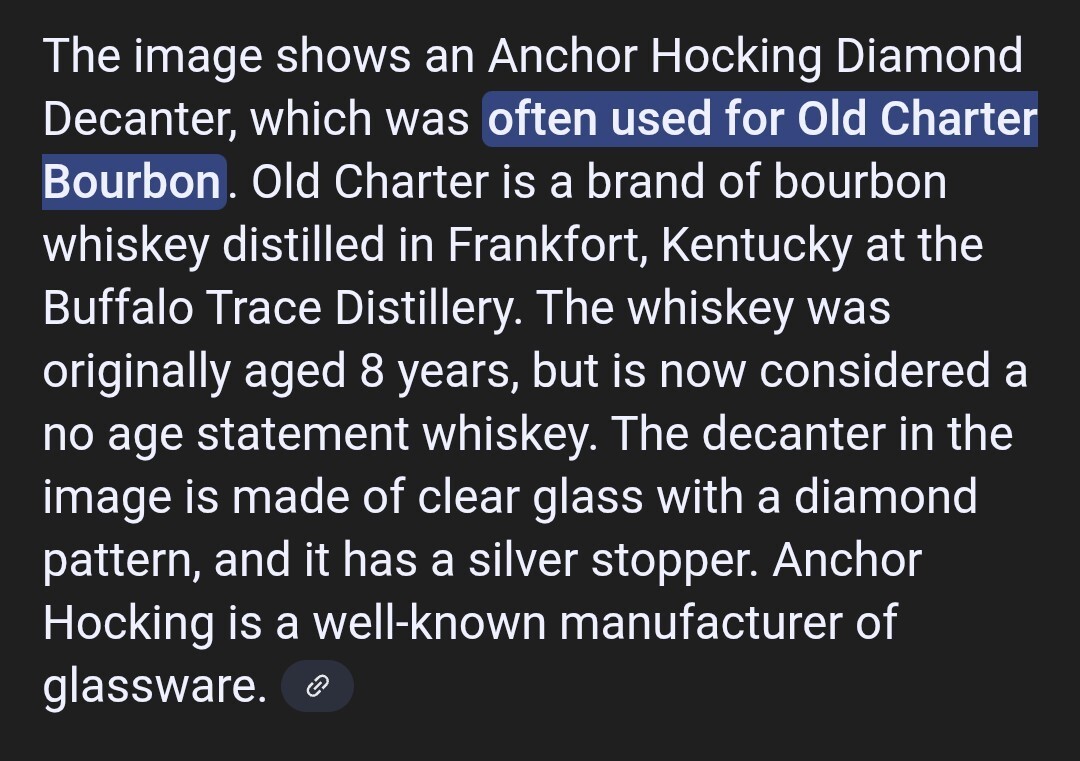 - Vintage 1980s Old Charter Kentucky Bourbon Whiskey Clear Glass Diamond Bottle