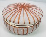 Vintage 1980s Trinket Box w/ Lid 4x2 Inch Gold White Stripes Resin
