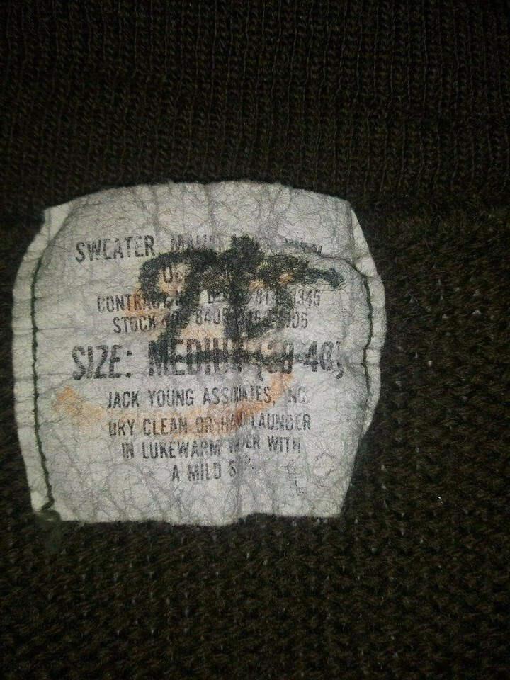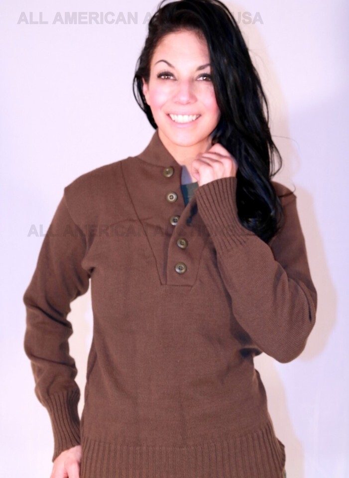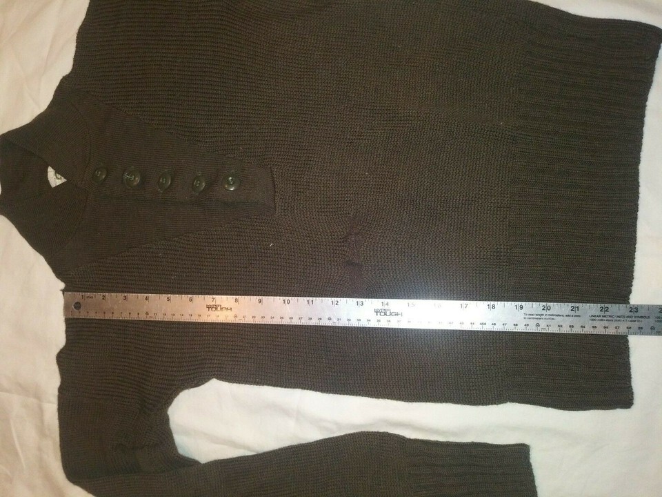 - VINTAGE 1981 100% WOOL MILITARY BROWN 5 BUTTON SWEATER MEDIUM 38-40