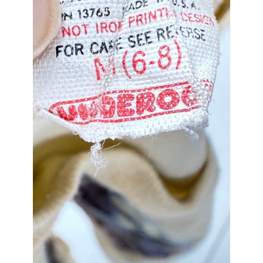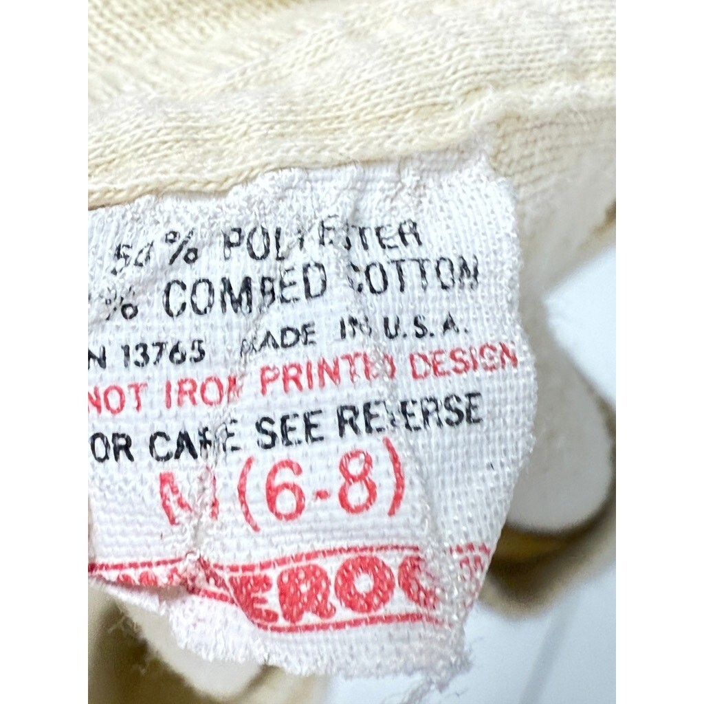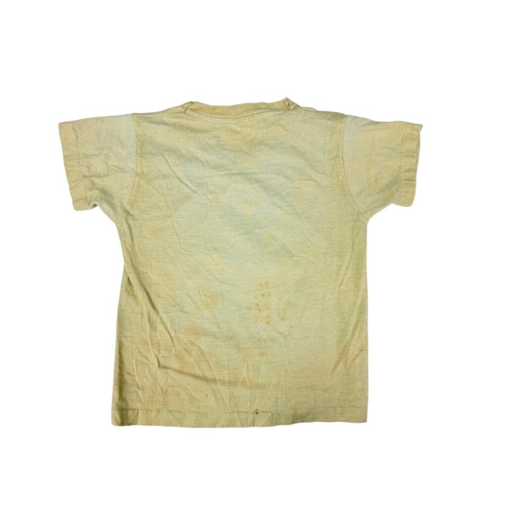 Bring home a piece of cinematic magic with this authentic vintage 1982 E.T. the Extra-Terrestrial t-shirt! This single-stitch, cotton blend tee, likely from the iconic Underoos line, features the beloved E.T. graphic in fantastic shape. While it shows significant discoloration (as pictured), this only adds to its storied vintage character. Perfect for the young fan or collector, this shirt is a true piece of movie history!