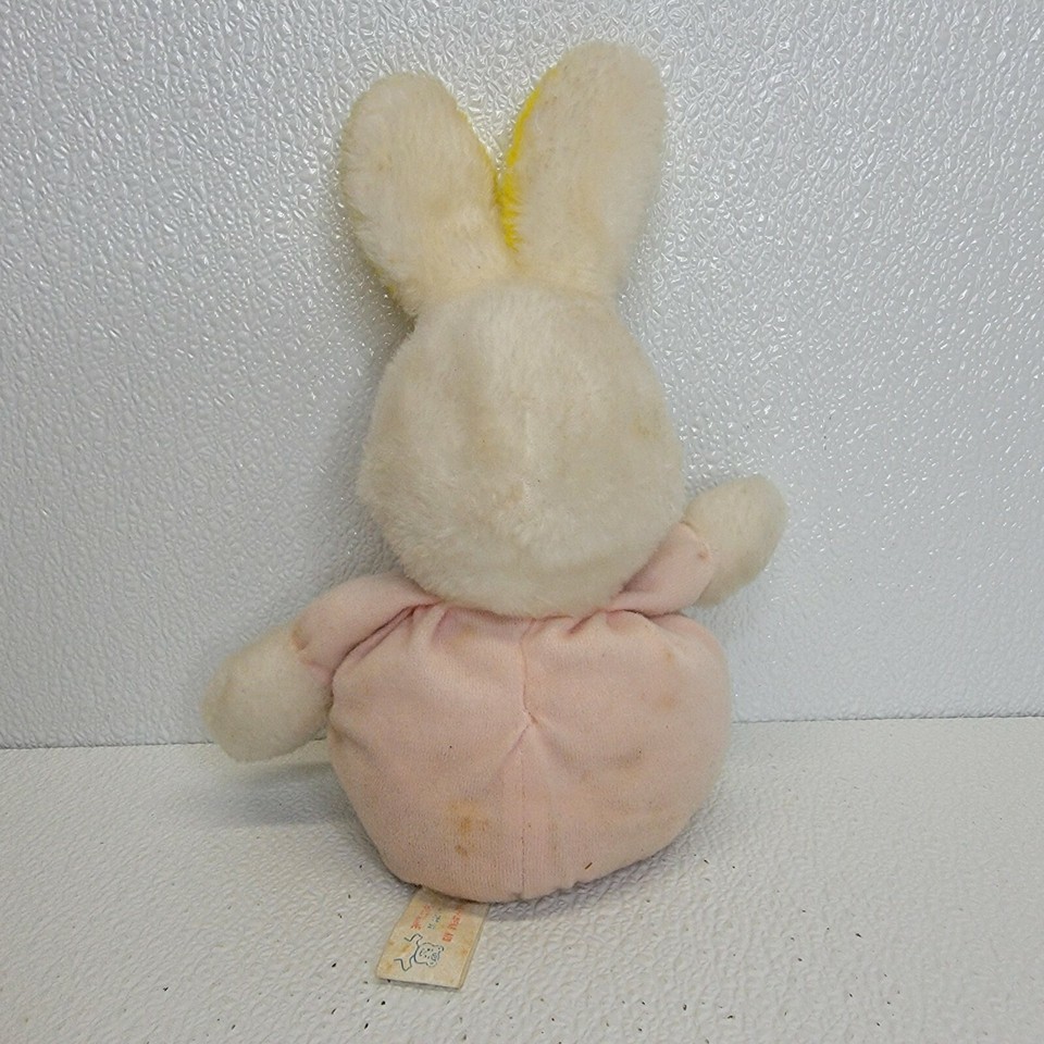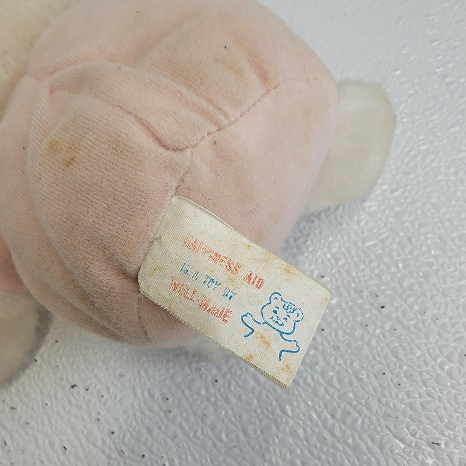 - VINTAGE 1983 WELL MADE TOYS HAPPINESS AID BEAN PLUSH BUNNY PINK WHITE YELLOW