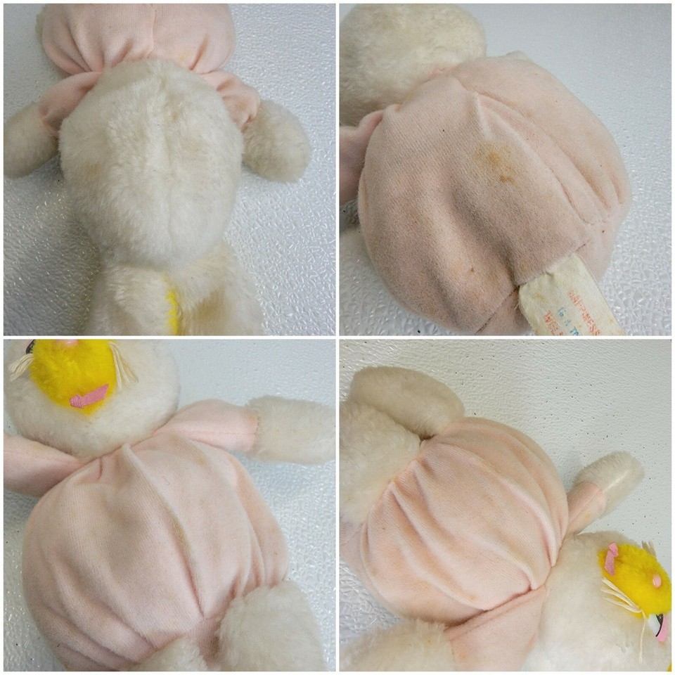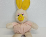 RARE VINTAGE 1983 WELL MADE TOYS HAPPINESS AID BEAN PLUSH BUNNY PINK WHITE YELLOW. Some spots/stains as seen in images. Images show actual plush that will ship.