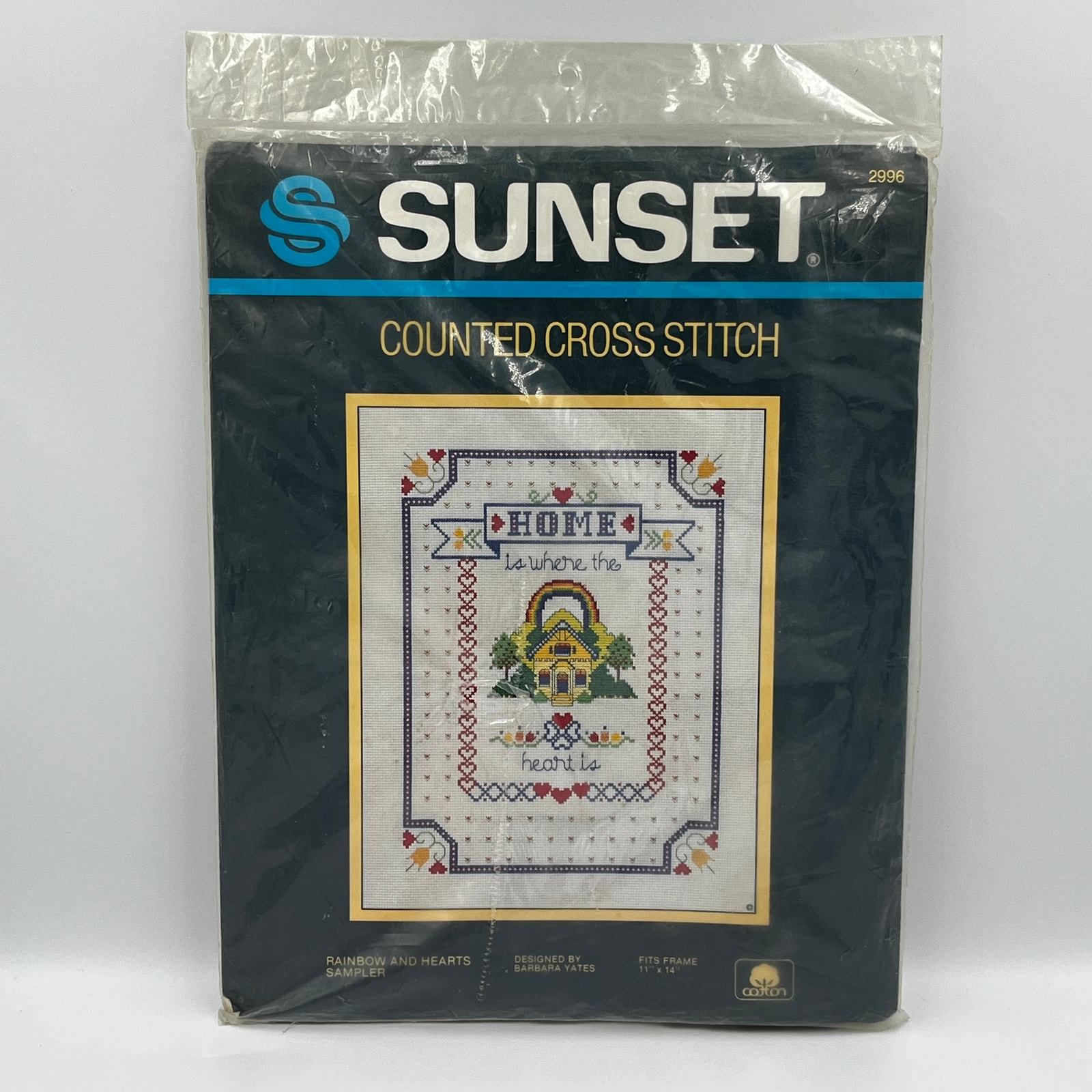 - Vintage 1984 Sunset Designs Counted Cross Stitch Kit Rainbow And Hearts NEW