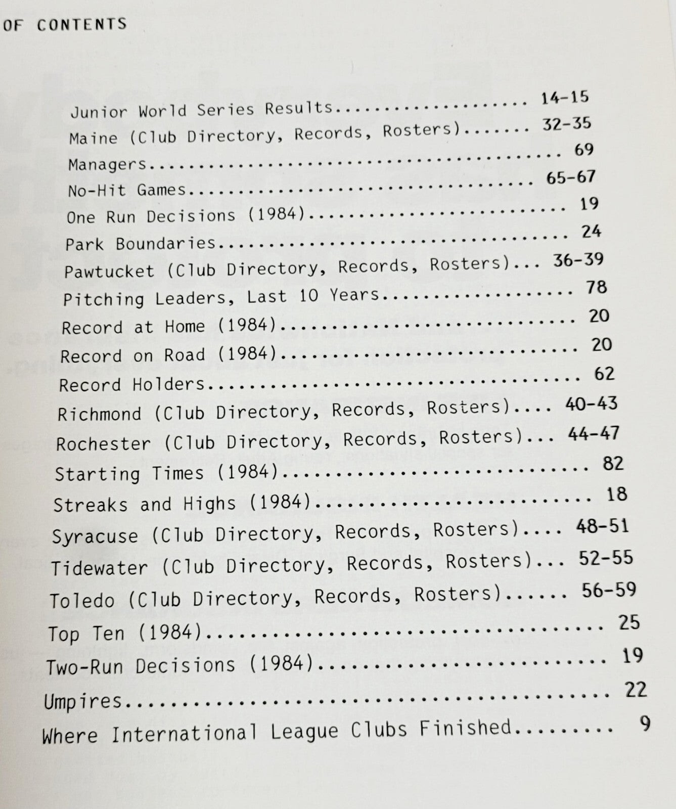 - Vintage 1985 International League Of Baseball Clubs Records Stats Book 49th Ed