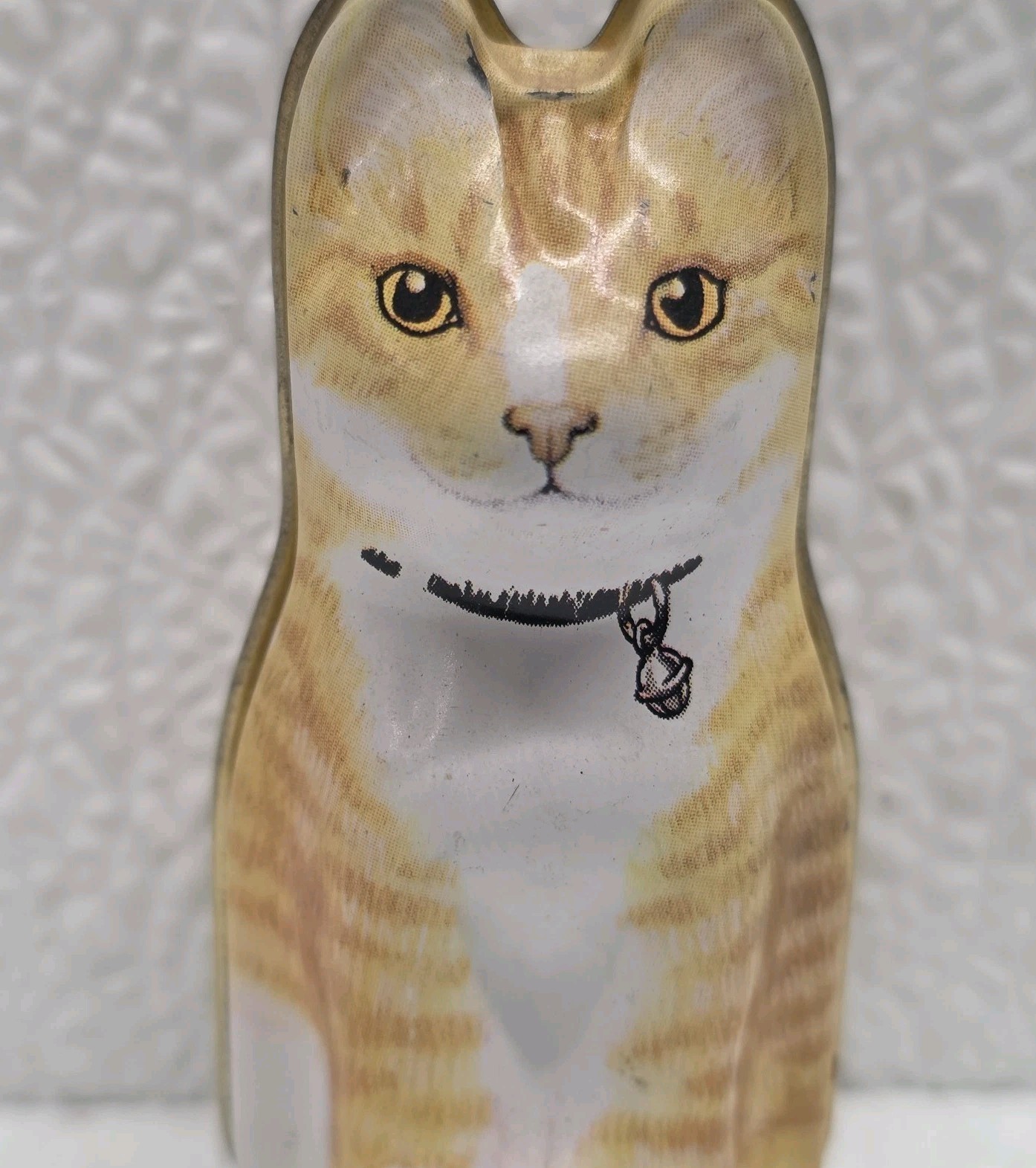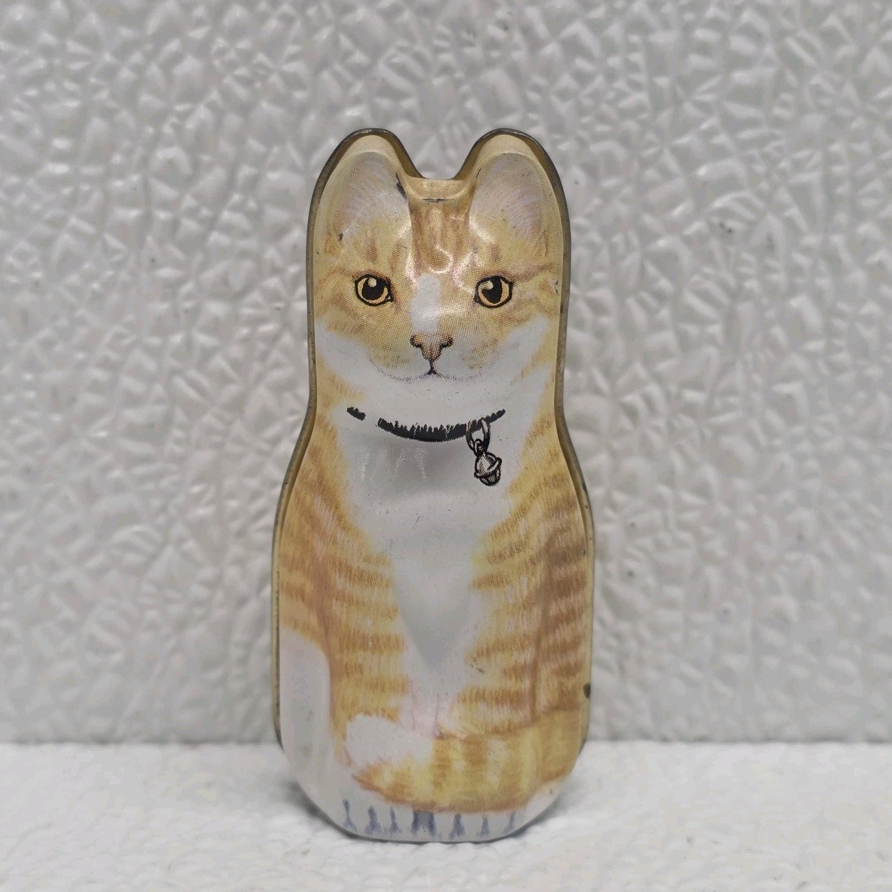 Vintage 1986 HUNKYDORY Miniature Orange White Cat Tin Dana Kubick England 2.5". Images show actual item that will ship.