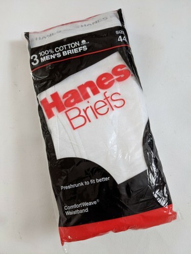 Zum Verkauf steht eine neue Packung mit 3 Vintage 1987 Hanes White Briefs Unterwasche aus 100 % Baumwolle, Große 44 USA.