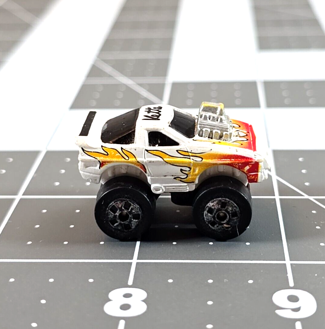- Vintage 1987 Road Champs Micro Machines Lifted White Corvette w/ Flames Monster