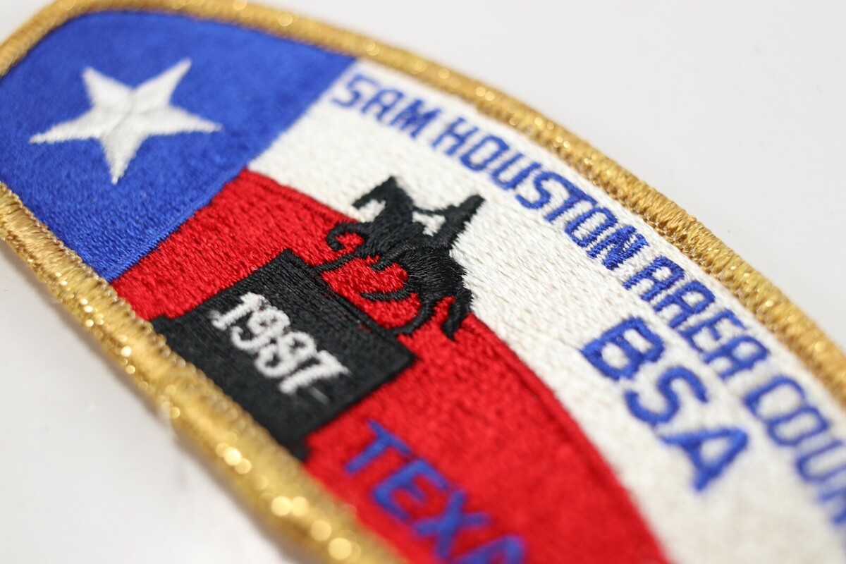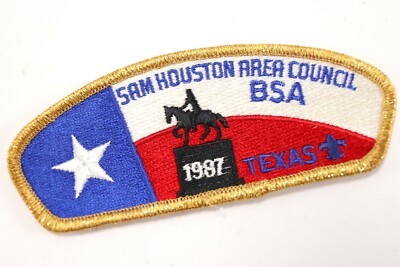 - Vintage 1987 Sam Houston Area Council Texas Gold Boy Scouts America Flap Patch